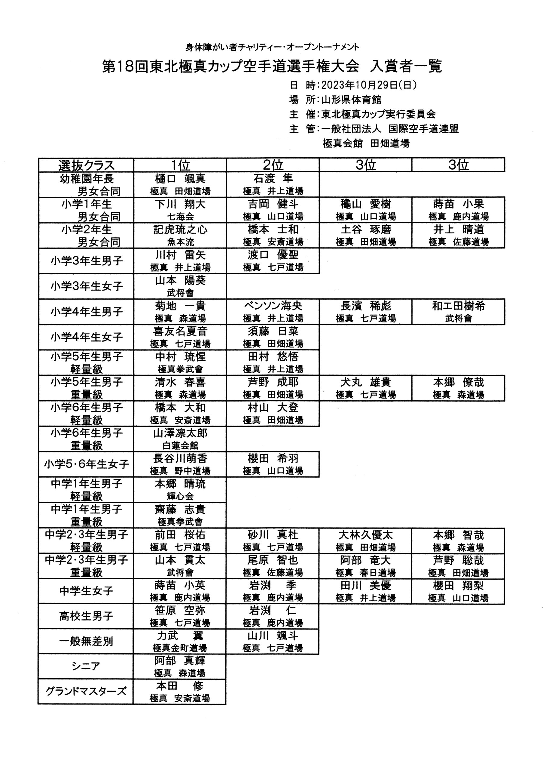 大会結果報告 2024直心杯空手道選手権大会田畑道場代表選手結果 2024年10月15日 tabatadojo https://kyokushin-tabatadojo.com/wp/wp-content/uploads/2020/01/logo_main01.png 田畑道場