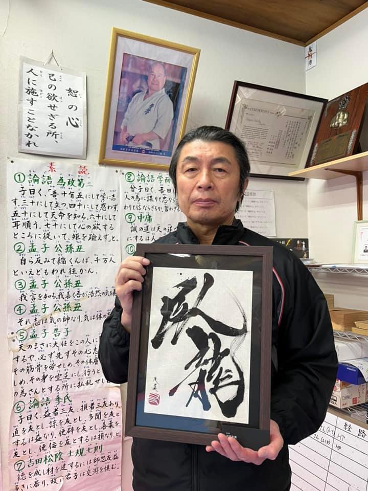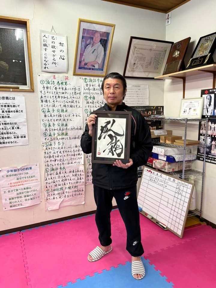 12月26日に熊本で大会がありました。その際に黒帯の田中恵一先輩に臥龍の話をしたところ、偉く感銘され、書道家で有名な石井友美先生に、臥龍の書をお願いし書いて頂き、心の戒めにしてるとLINEがありました。その後、12月16日の第51回全日本大会の開会式の理事長挨拶でも臥龍のお話しをしたと頃、熊本の今回シニア40歳以上の部で優勝した、早田信先生もいたく感銘され、早田先生と田中恵一先輩が話され、石井友美先生の臥龍の書が、昨日我が道場に届きました。この臥龍を田畑道場、田畑家の家宝とし、早田先生、田中先輩、石井先生の善意と好意に衷心より御礼、感謝を申し上げます。ありがとうございました‼️
