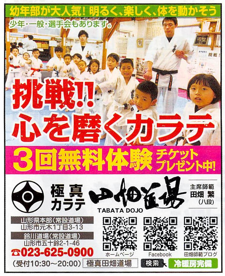 What's New やまがたコミュニティ新聞に広告が掲載されました! tabatadojo 2020年1月28日 やまがたコミュニティ新聞2020年1月24日号に広告が掲載されました。ぜひご覧ください!