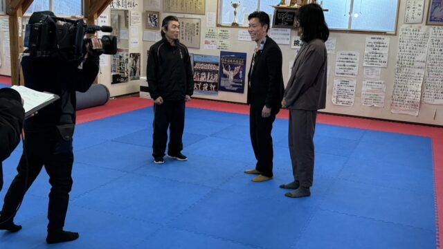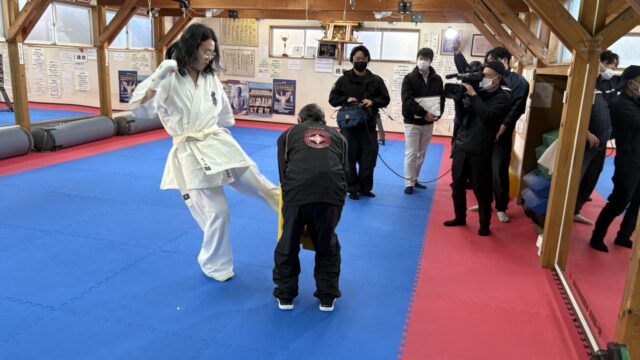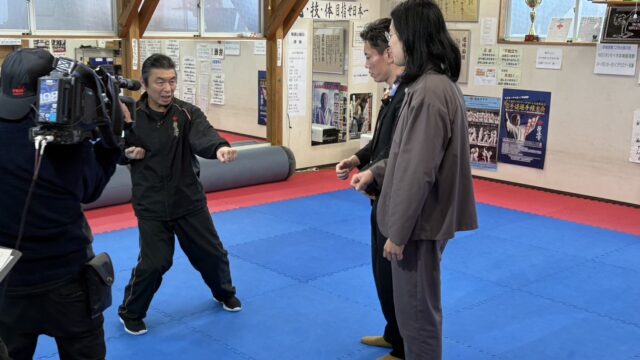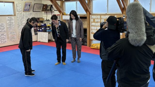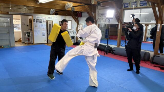 ダイバーシティメディアの番組収録で、お笑いコンビ「孫ダッシュ」が肉体と精神を鍛えるために極真カラテ田畑道場に体験入会に来られました。