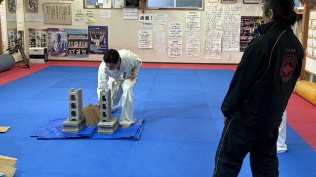 本日鍛えた肉体と精神力、そして瞑想によって心を整え、肉体と精神を呼吸力で一致させ、見事な板割りを「孫ダッシュ」吉村和彬さん、土屋さんが成し遂げました。