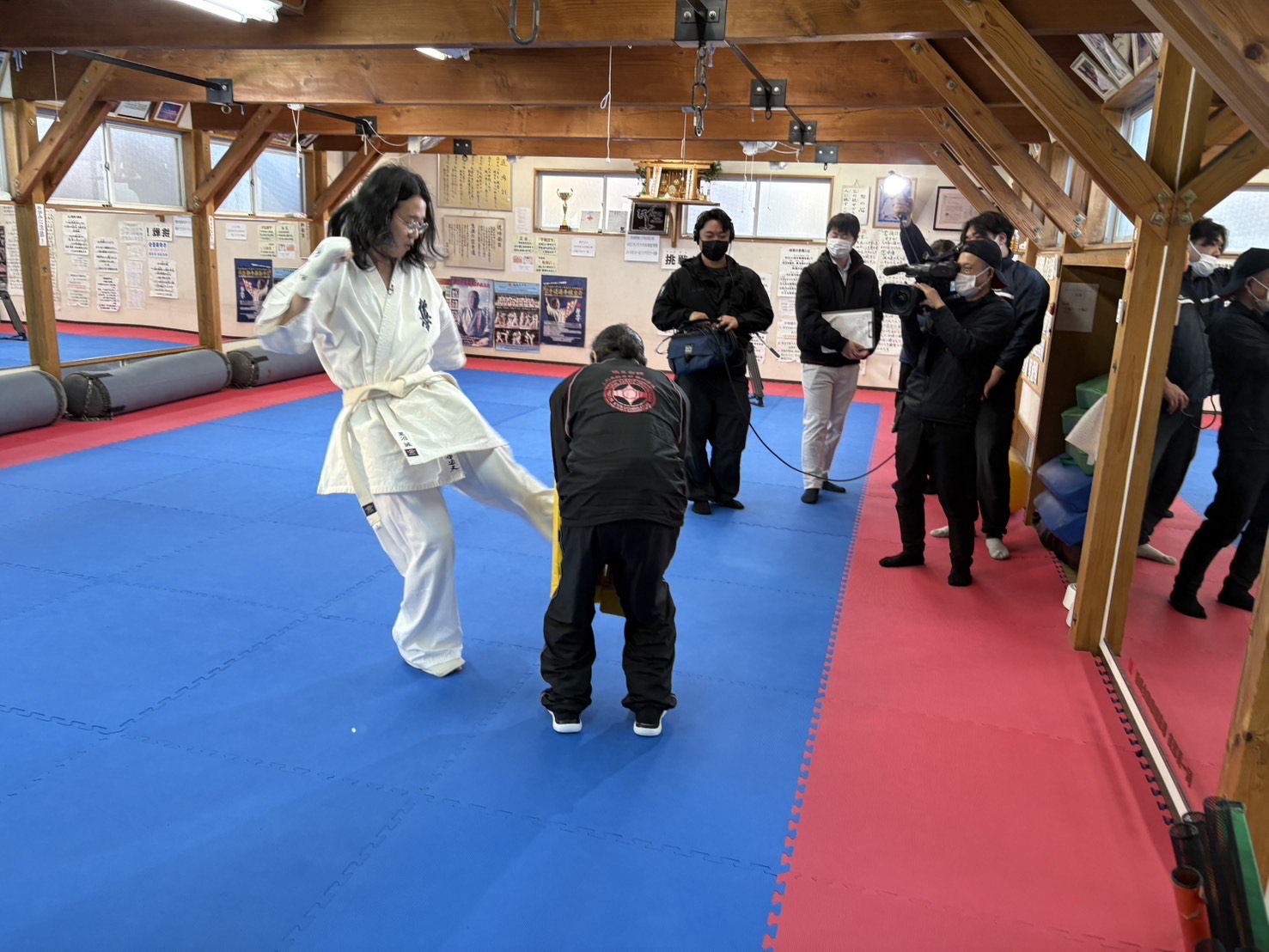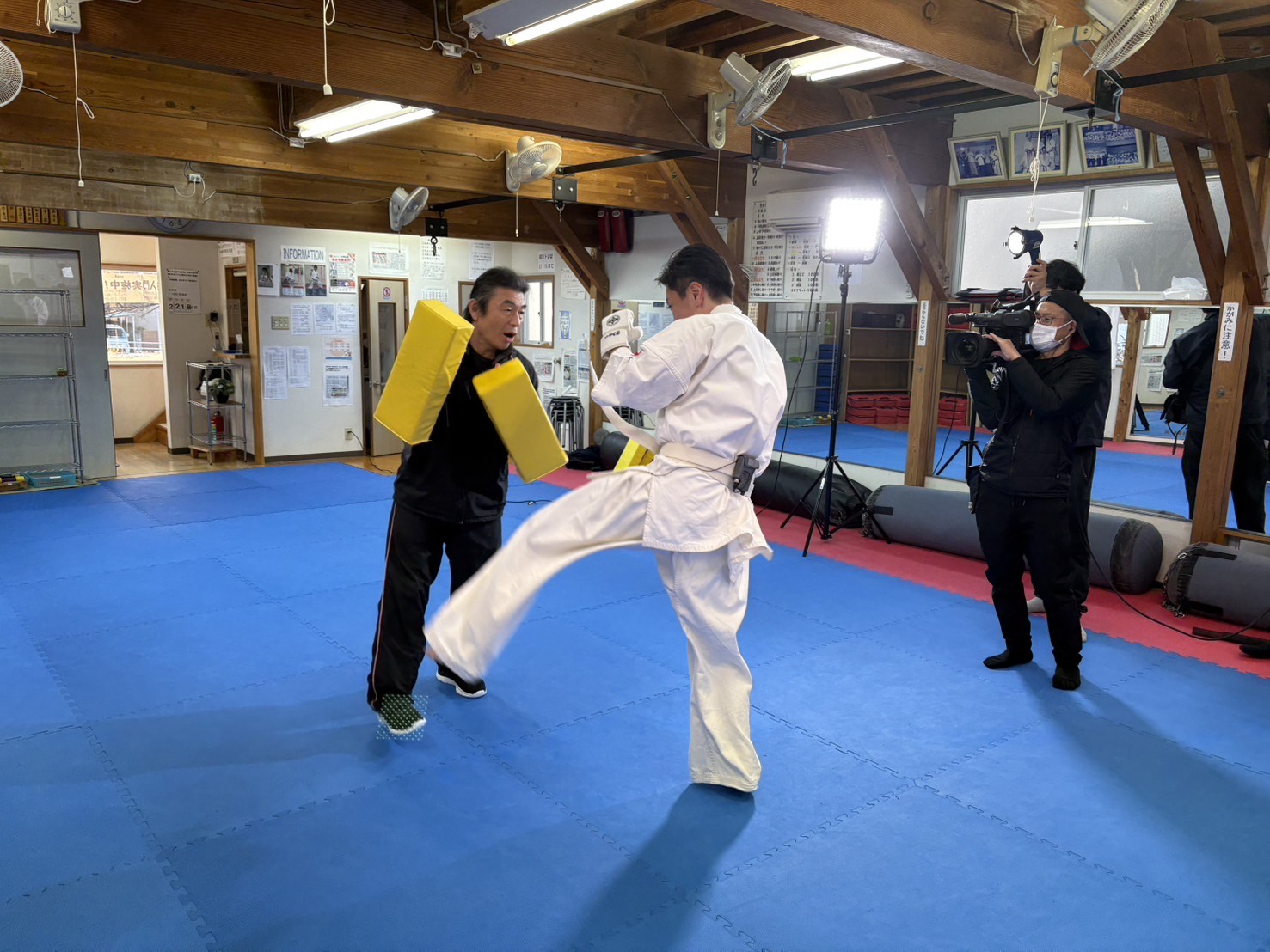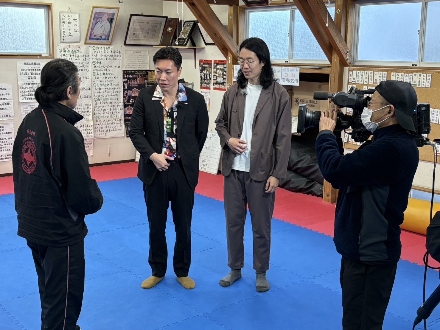 ダイバーシティメディアの番組収録で、お笑いコンビ「孫ダッシュ」が肉体と精神を鍛えるために極真カラテ田畑道場に体験入会に来られました。