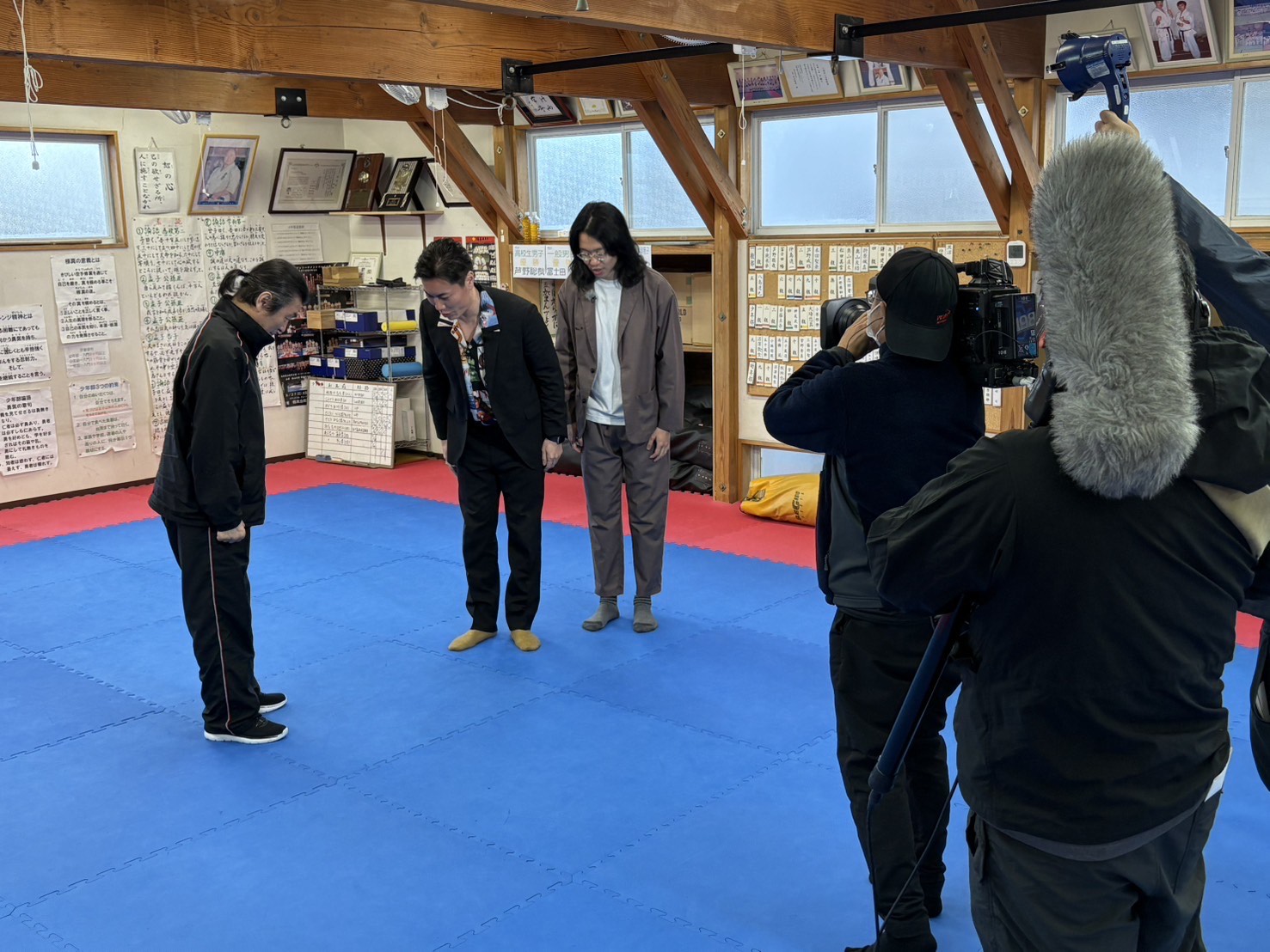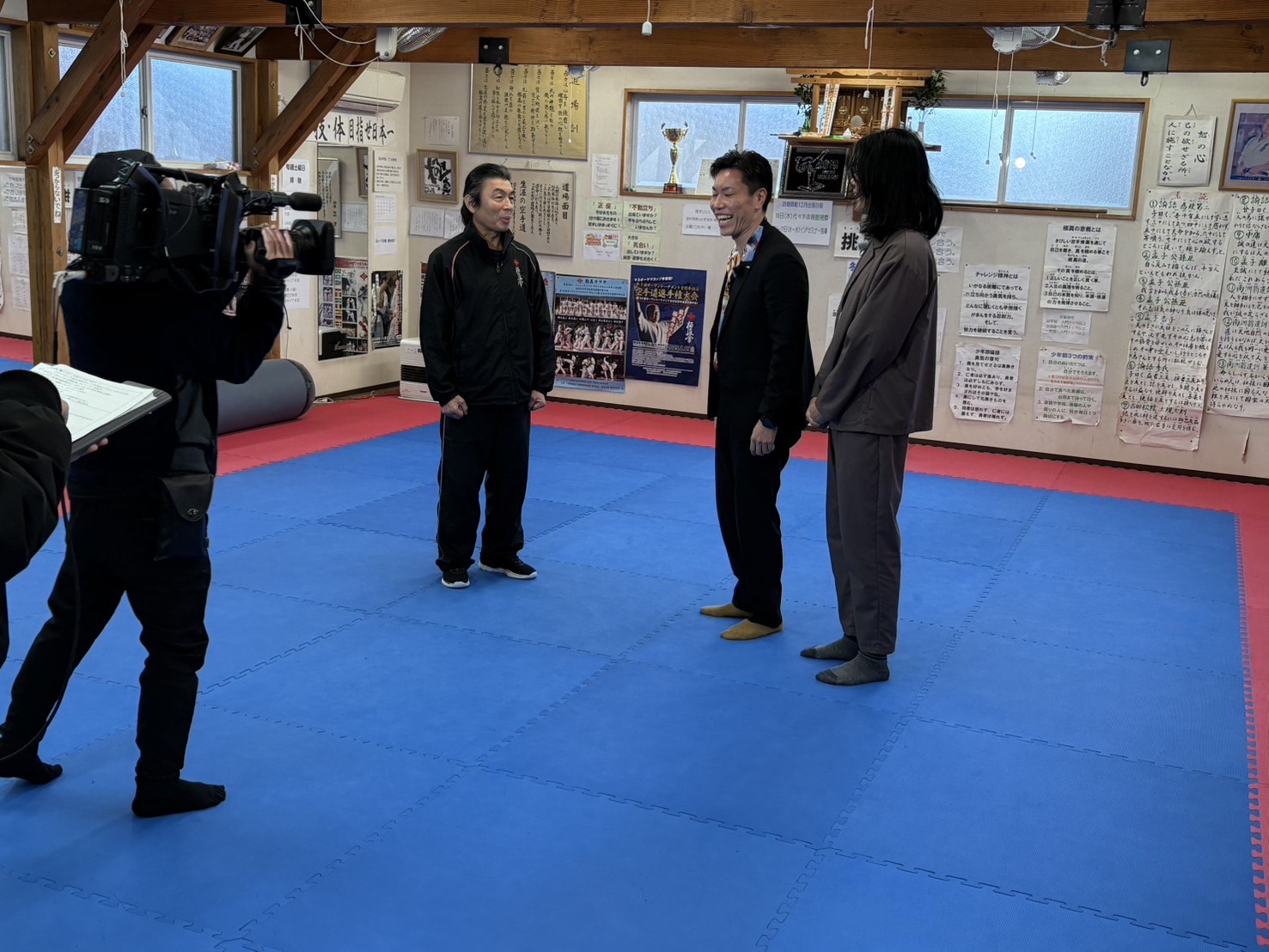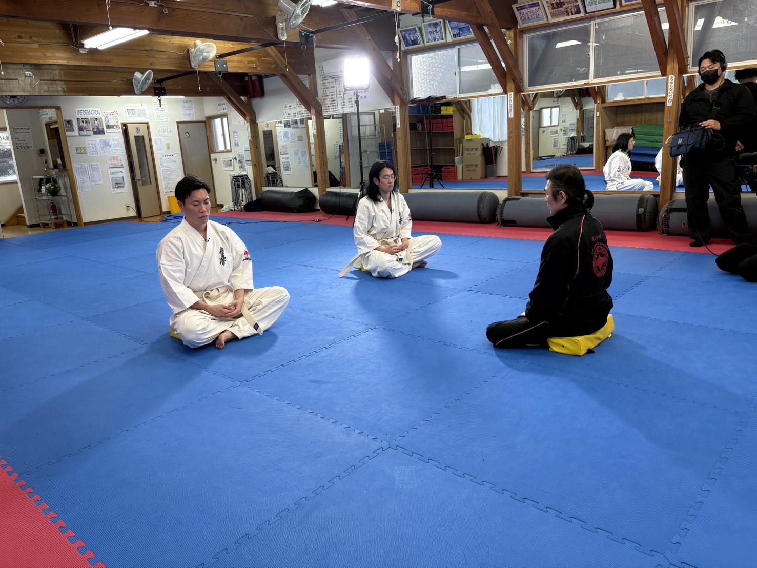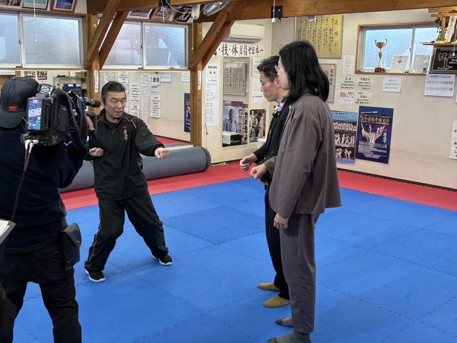 ダイバーシティメディアの番組収録で、お笑いコンビ「孫ダッシュ」が肉体と精神を鍛えるために極真カラテ田畑道場に体験入会に来られました。