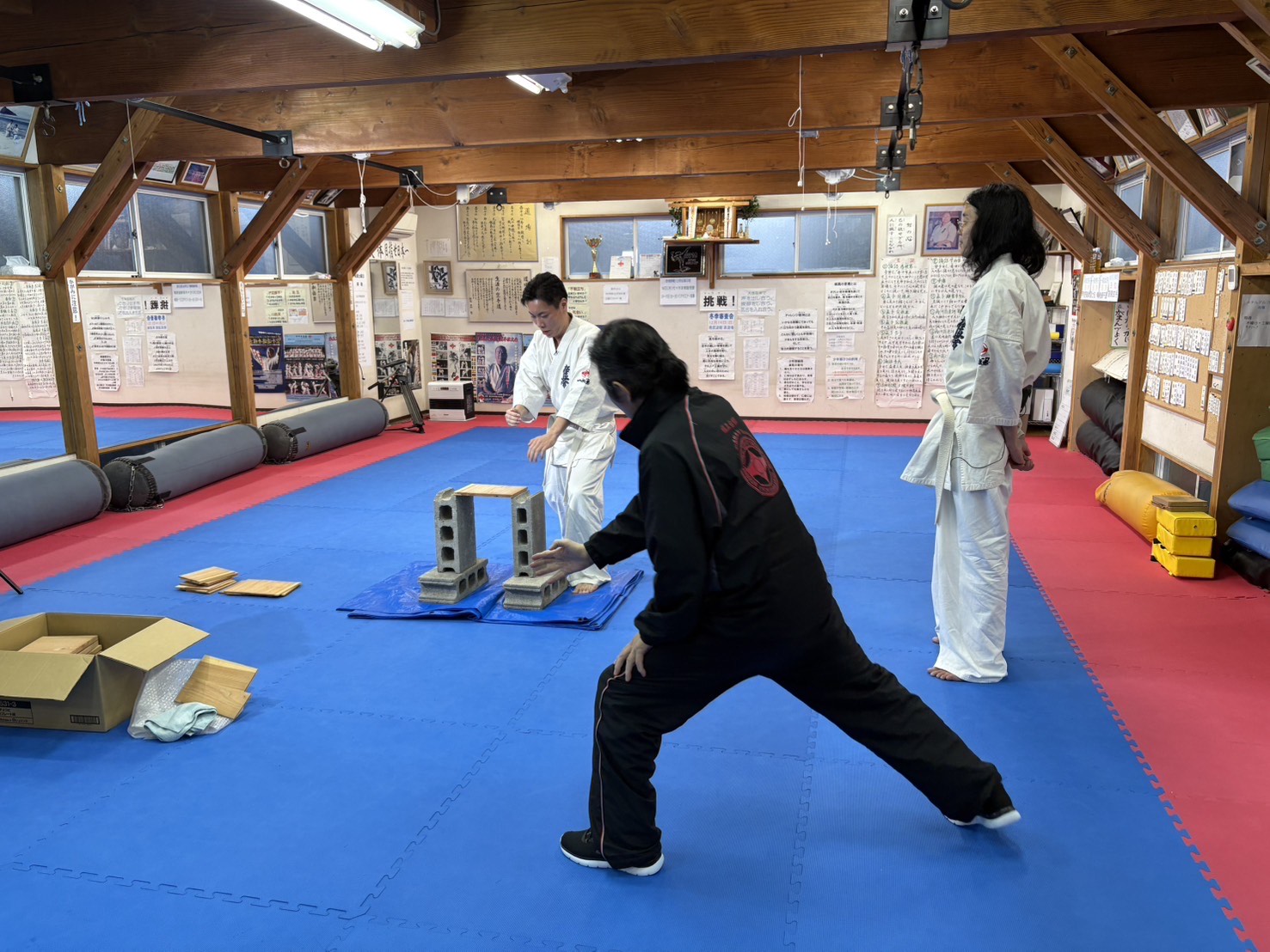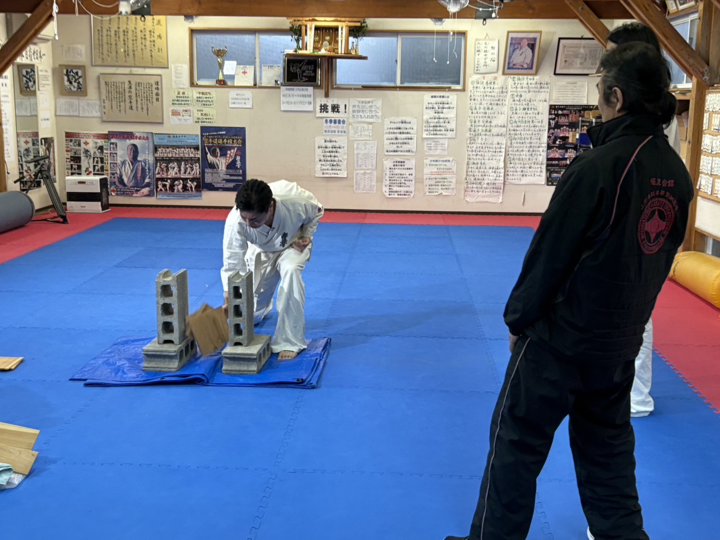 本日鍛えた肉体と精神力、そして瞑想によって心を整え、肉体と精神を呼吸力で一致させ、見事な板割りを「孫ダッシュ」吉村和彬さん、土屋さんが成し遂げました。