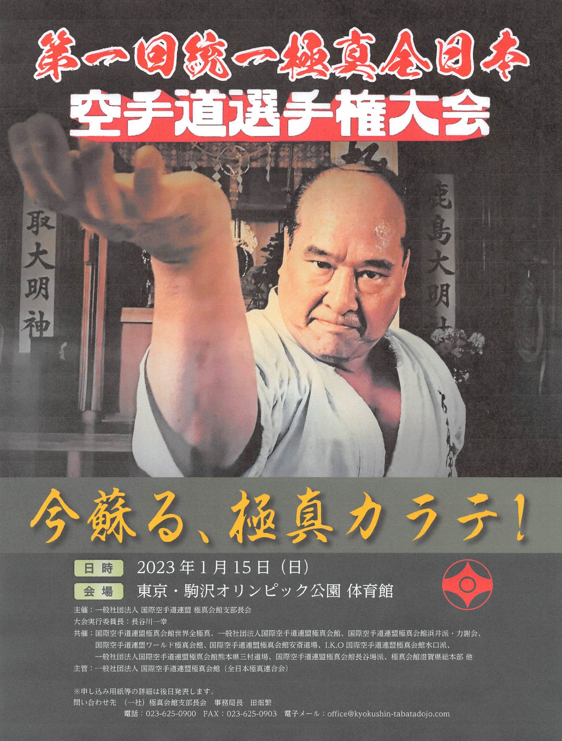 What's New 第一回統一極真全日本空手道選手権大会開催決定! tabatadojo 2022年4月12日 田畑師範が事務局長を務めておられます、(一社)極真会館支部長会主催の第一回統一極真全日本空手道選手権大会が2023年1月15日、東京・駒沢オリンピック公園体育館で記念すべき第一回目の大会が開催されます!
