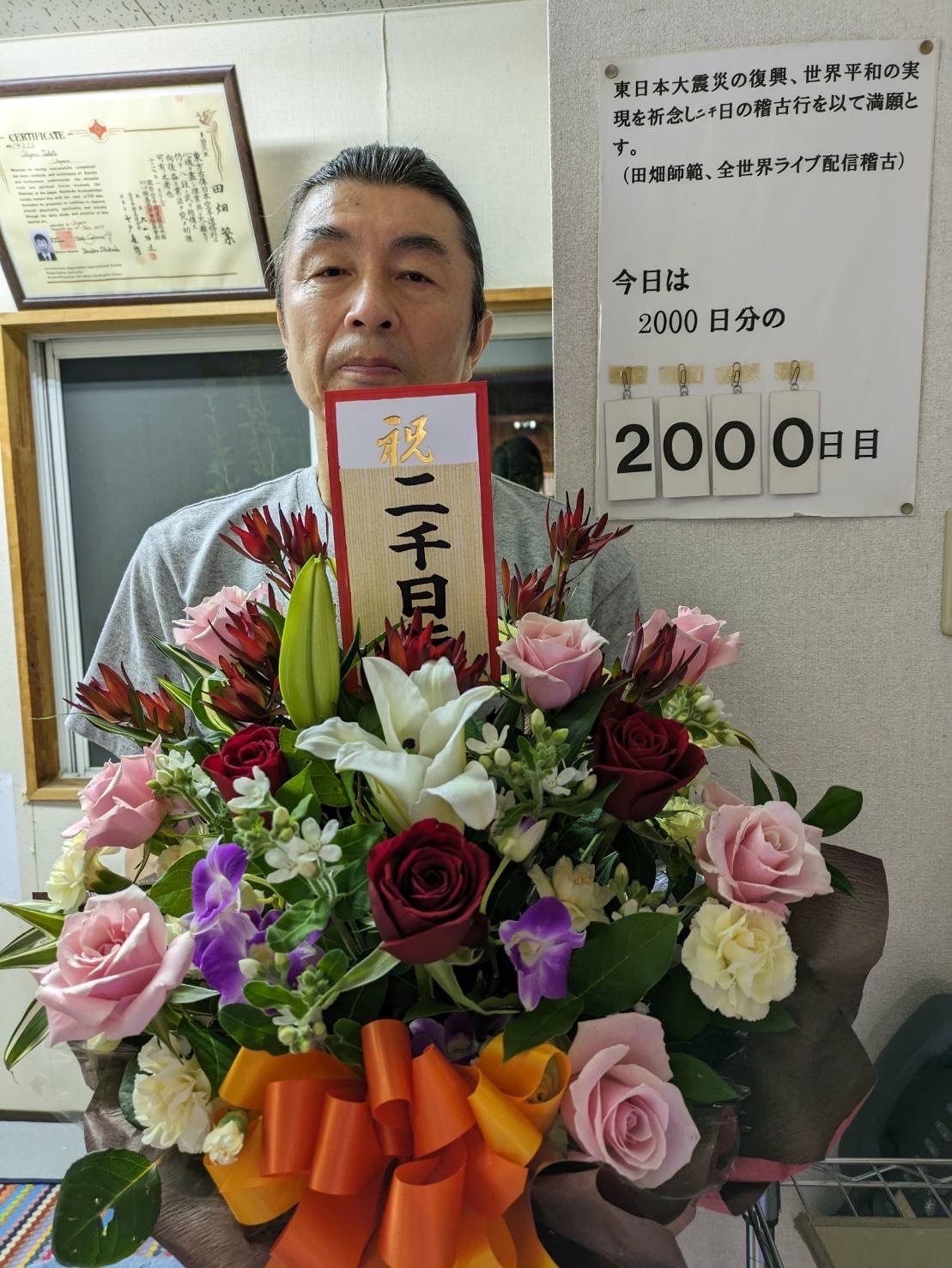 大山総裁は「君ィ(田畑)、山形県支部を設立し、道場生が入門したら、レッスンプロになってはいけない。自分自身がカラテ家として「達する」ための同志が道場生であると心がけたまえ」。そして、「自己鍛錬は、くれぐれも忘れないことだよ」。これが大山総裁からの、私田畑への遺言です。5月18日で64歳になります。三千日行の満願目指し、70歳超えても満願することを祈念して「達する」ことを夢見て、努力精進していこうと決心した、4月27日、2000日満願日でした。