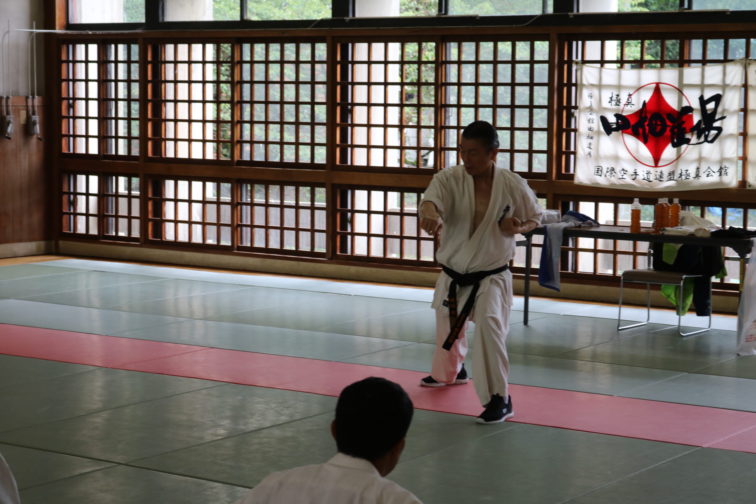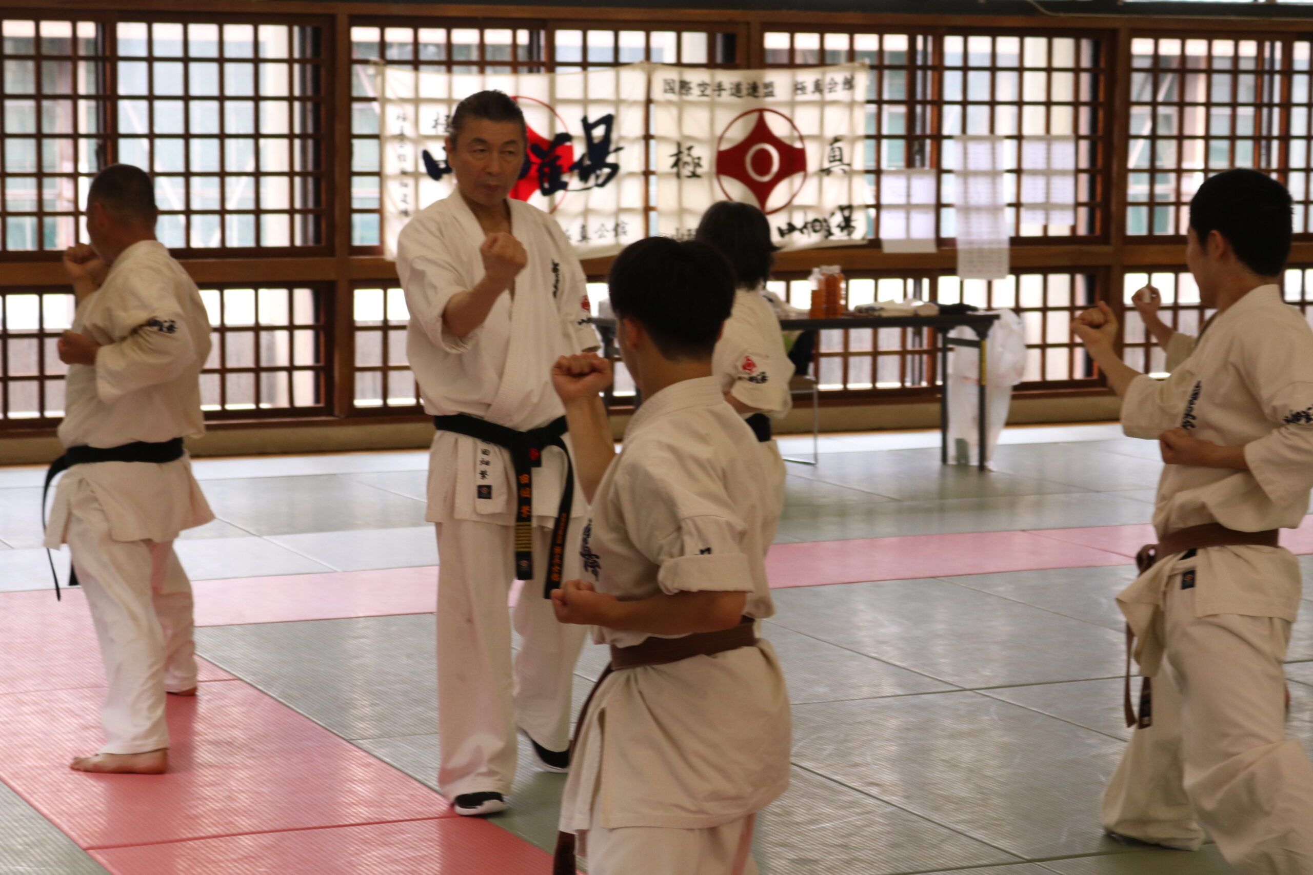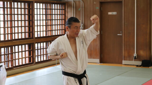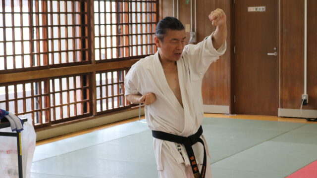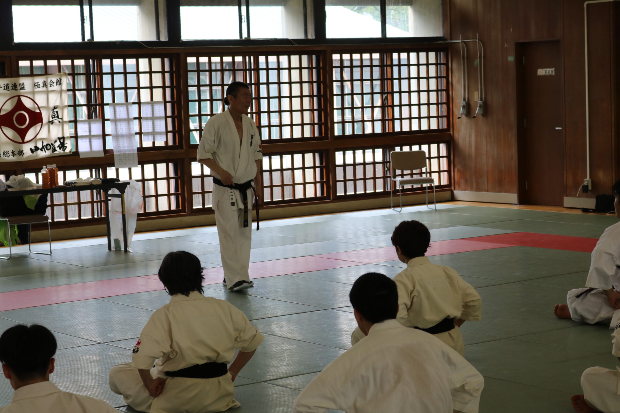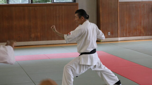 冒頭、田畑師範より「極真カラテは基本ではじまり、基本で終わる。三合法により、自分の生命力を最大限に高め自己完成、自己実現を目指していく。」ことを実技を交えての訓話がありました。