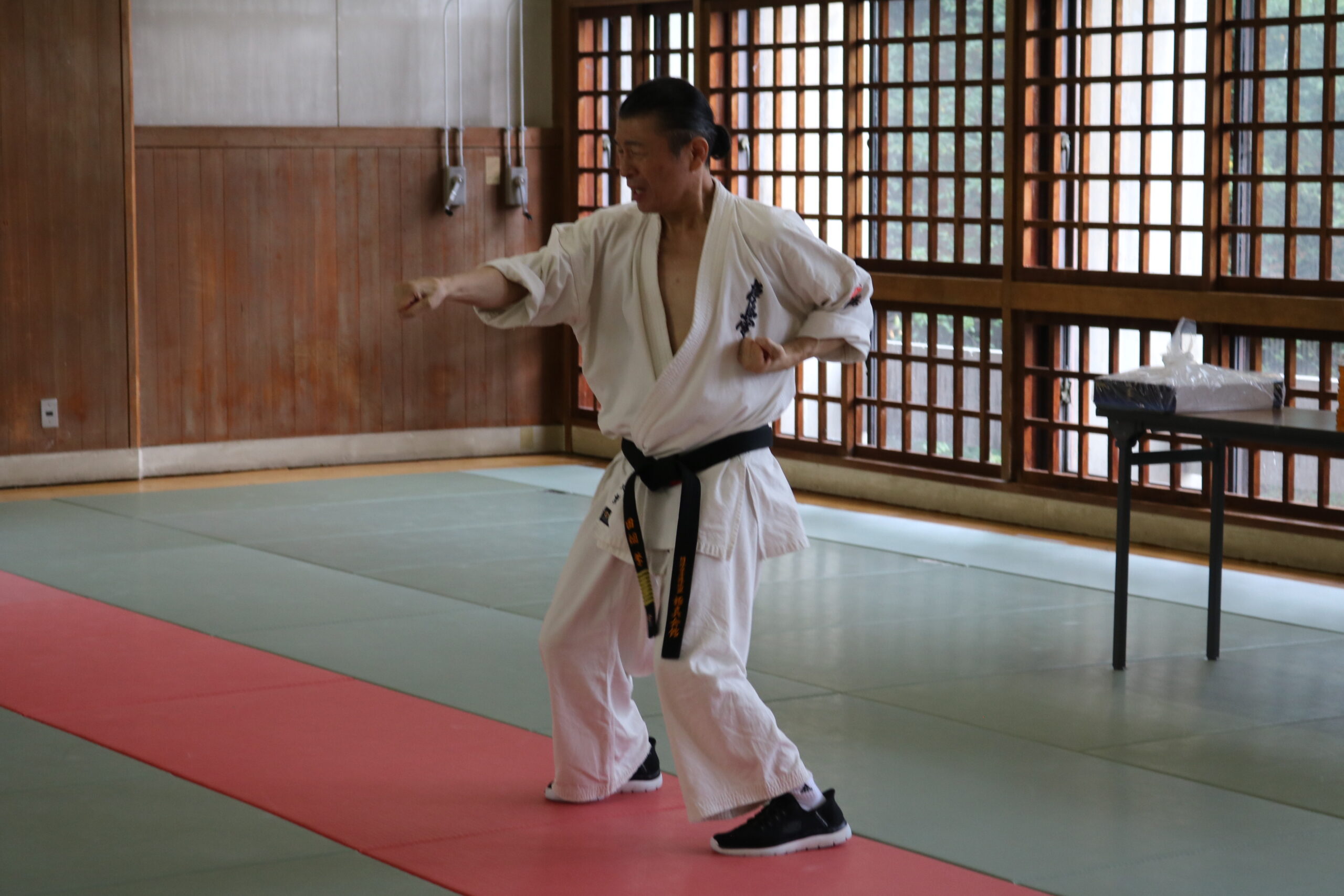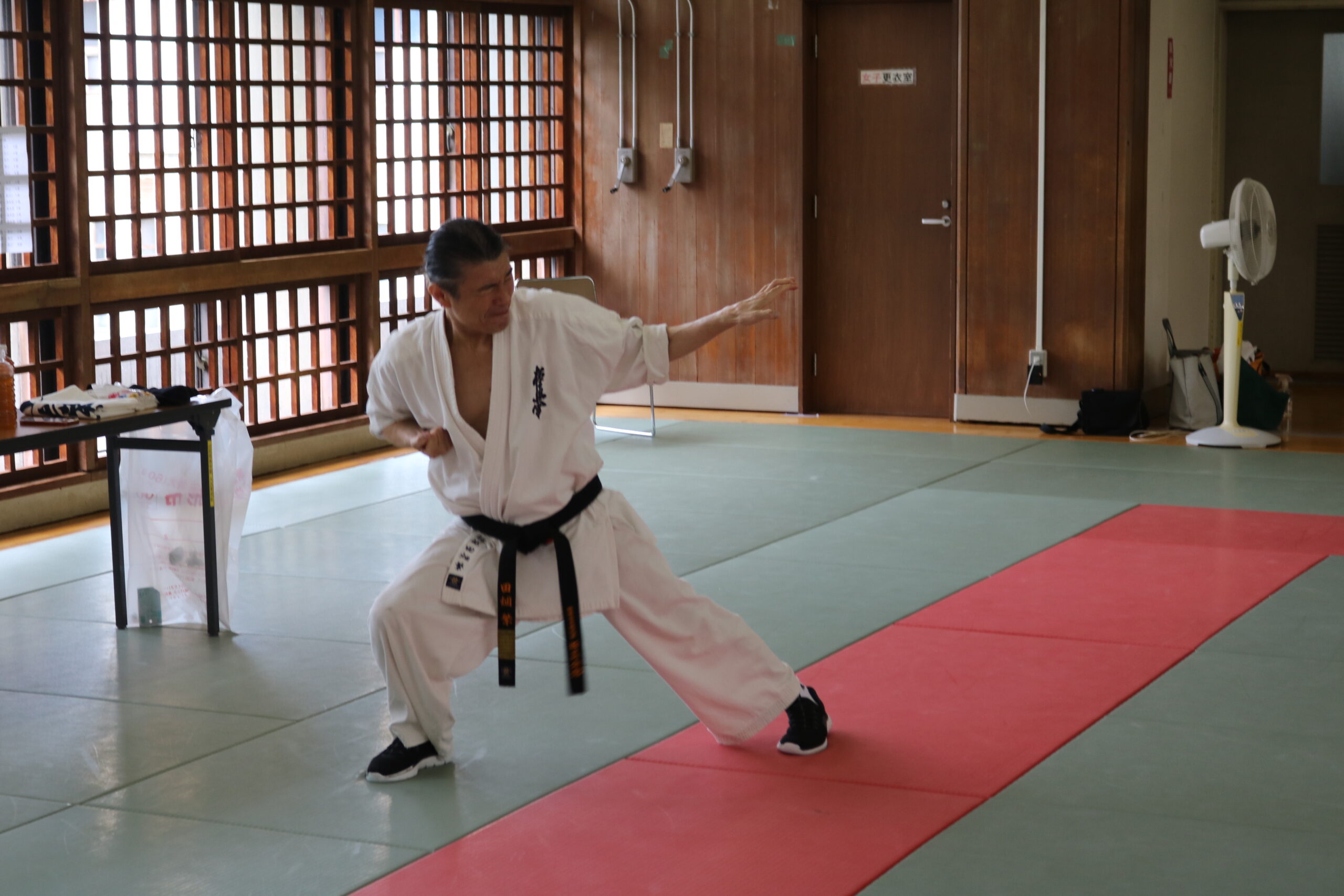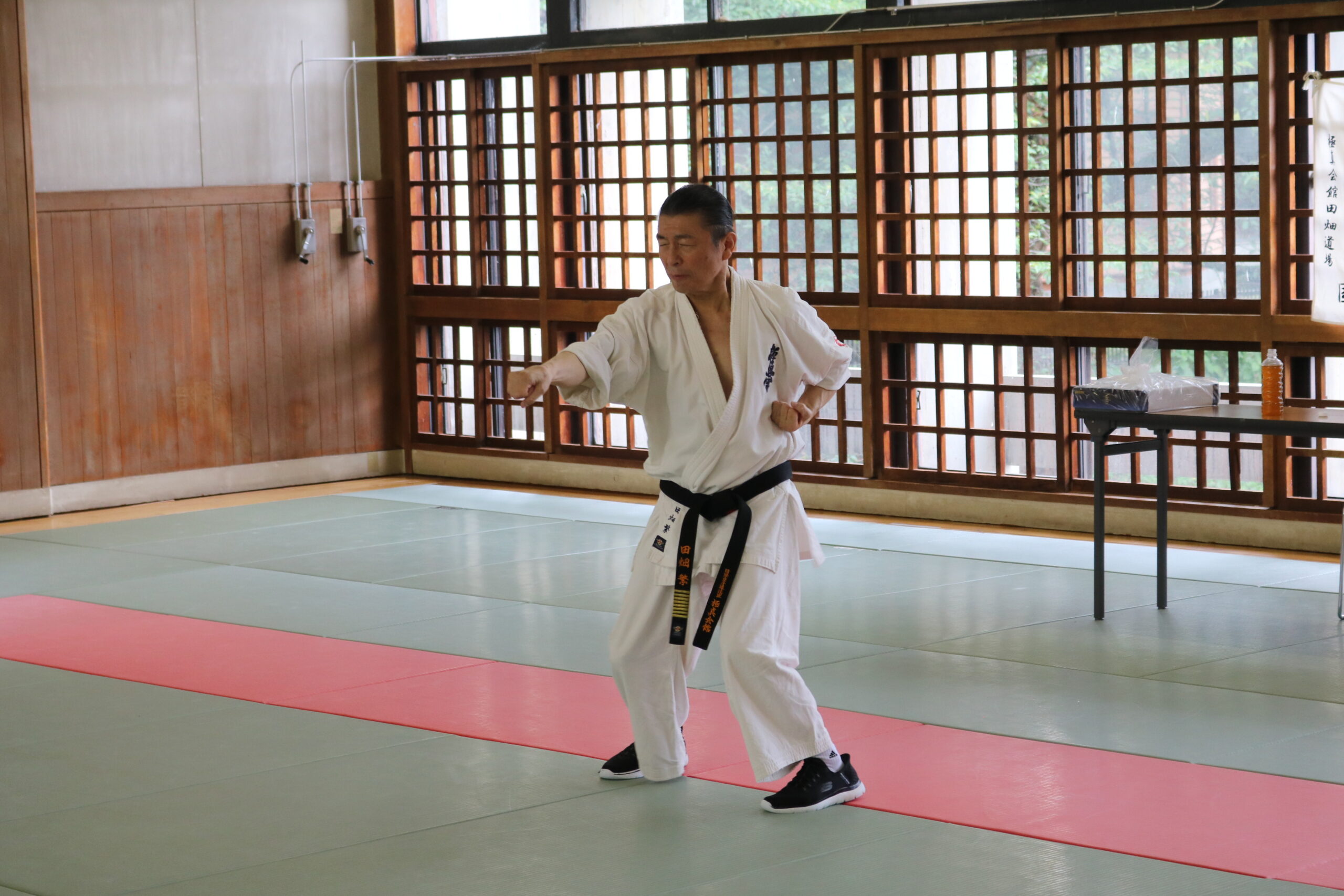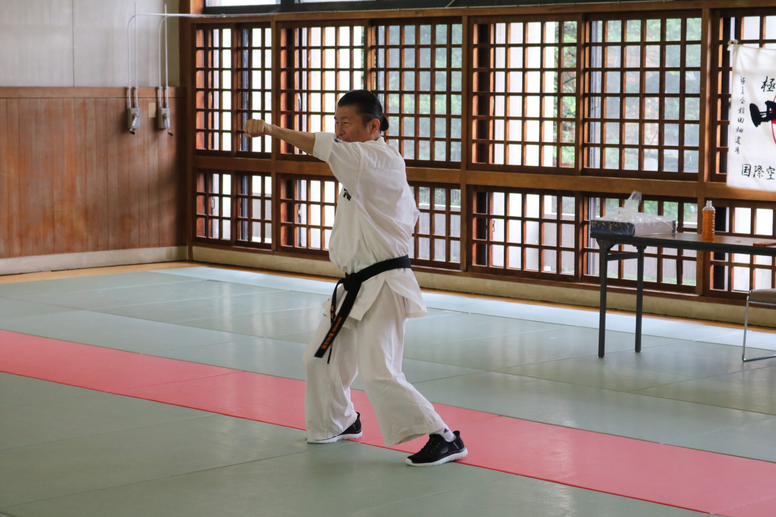 冒頭、田畑師範より「極真カラテは基本ではじまり、基本で終わる。三合法により、自分の生命力を最大限に高め自己完成、自己実現を目指していく。」ことを実技を交えての訓話がありました。