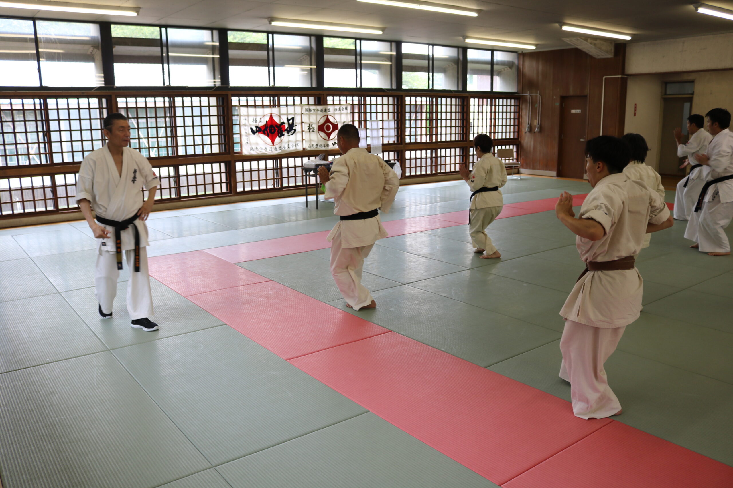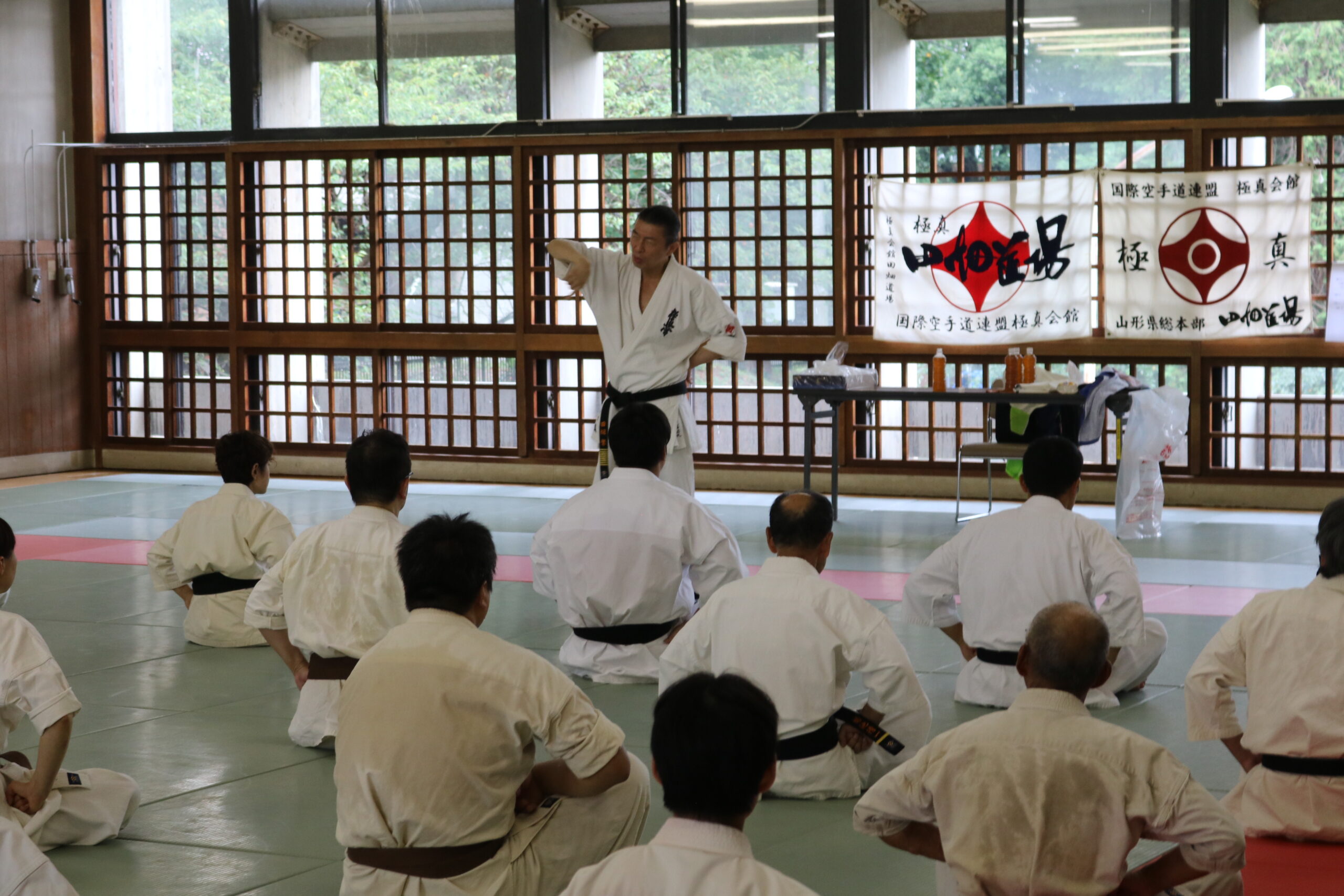 最後に田畑師範より「カラテの稽古に脇役はいません。一人一人の目標、夢の実現に向かっていくところに、同じ信念を持った仲間が集まり、お互いに力がぶつかり合うことで成長し合うことが出来る。これが合同稽古の強みであり、醍醐味です。」との訓話がありました。