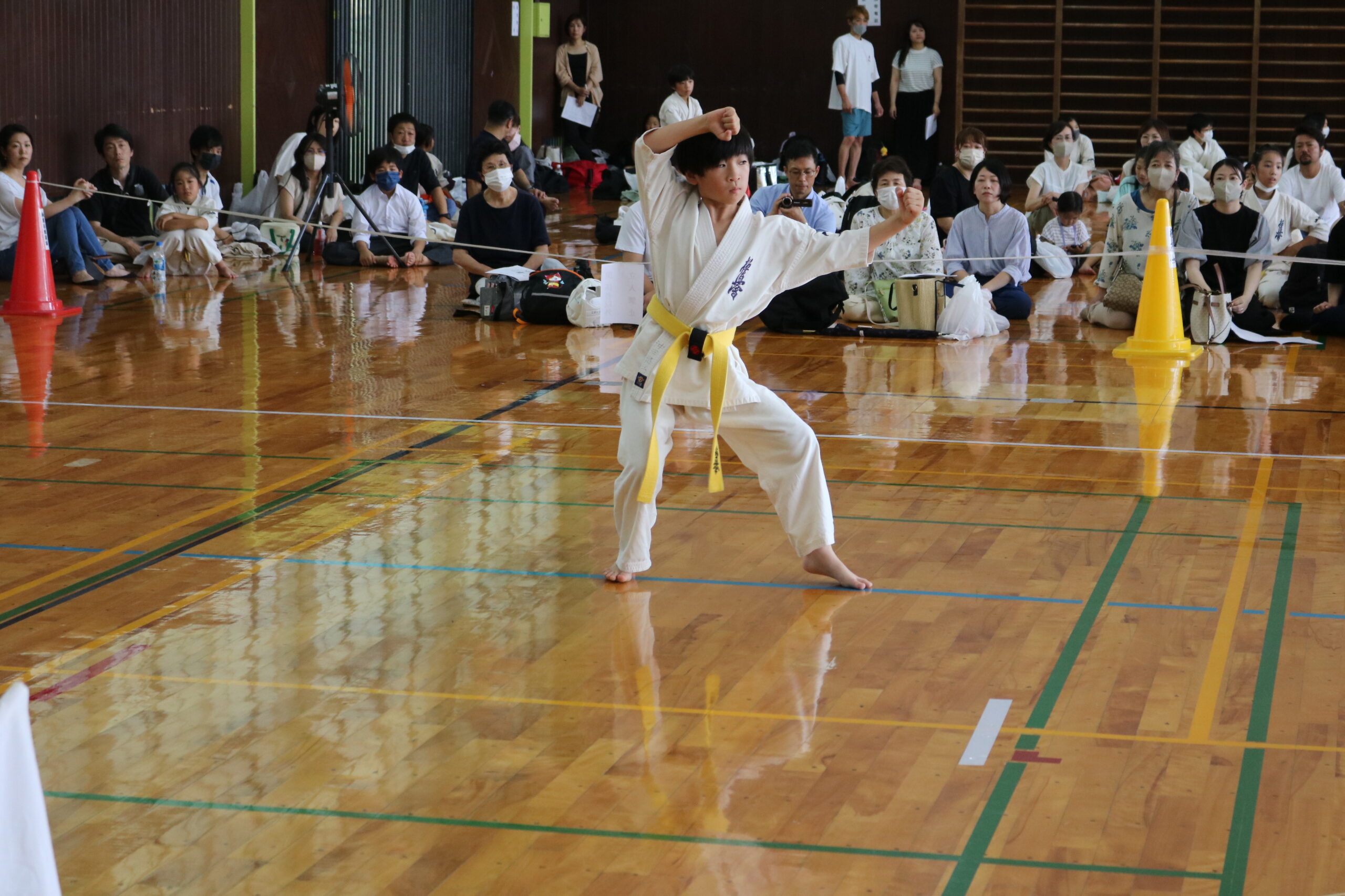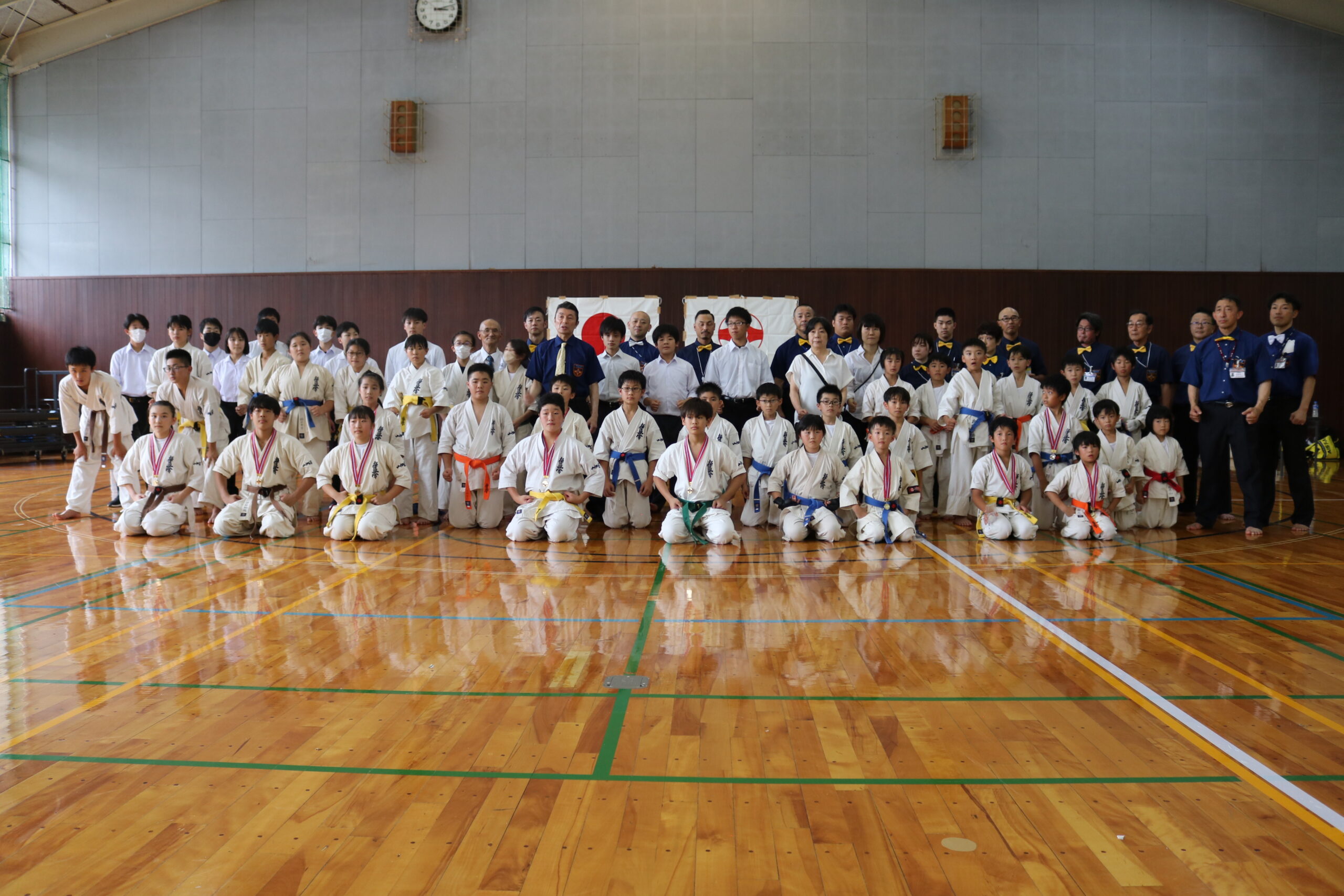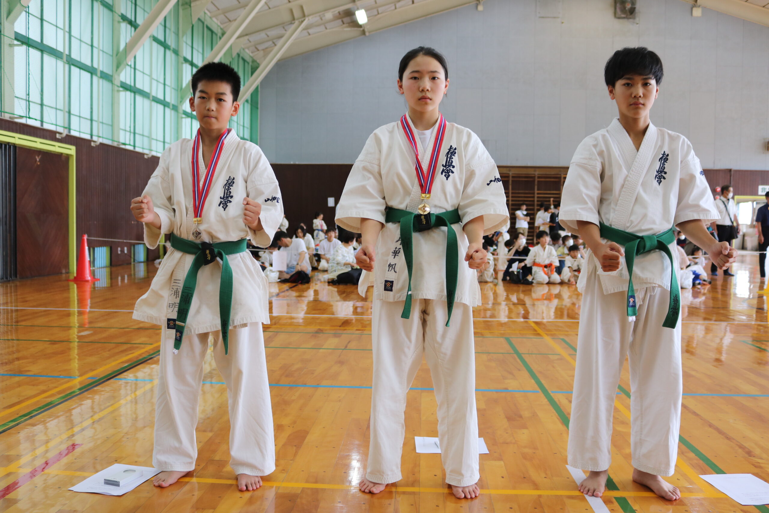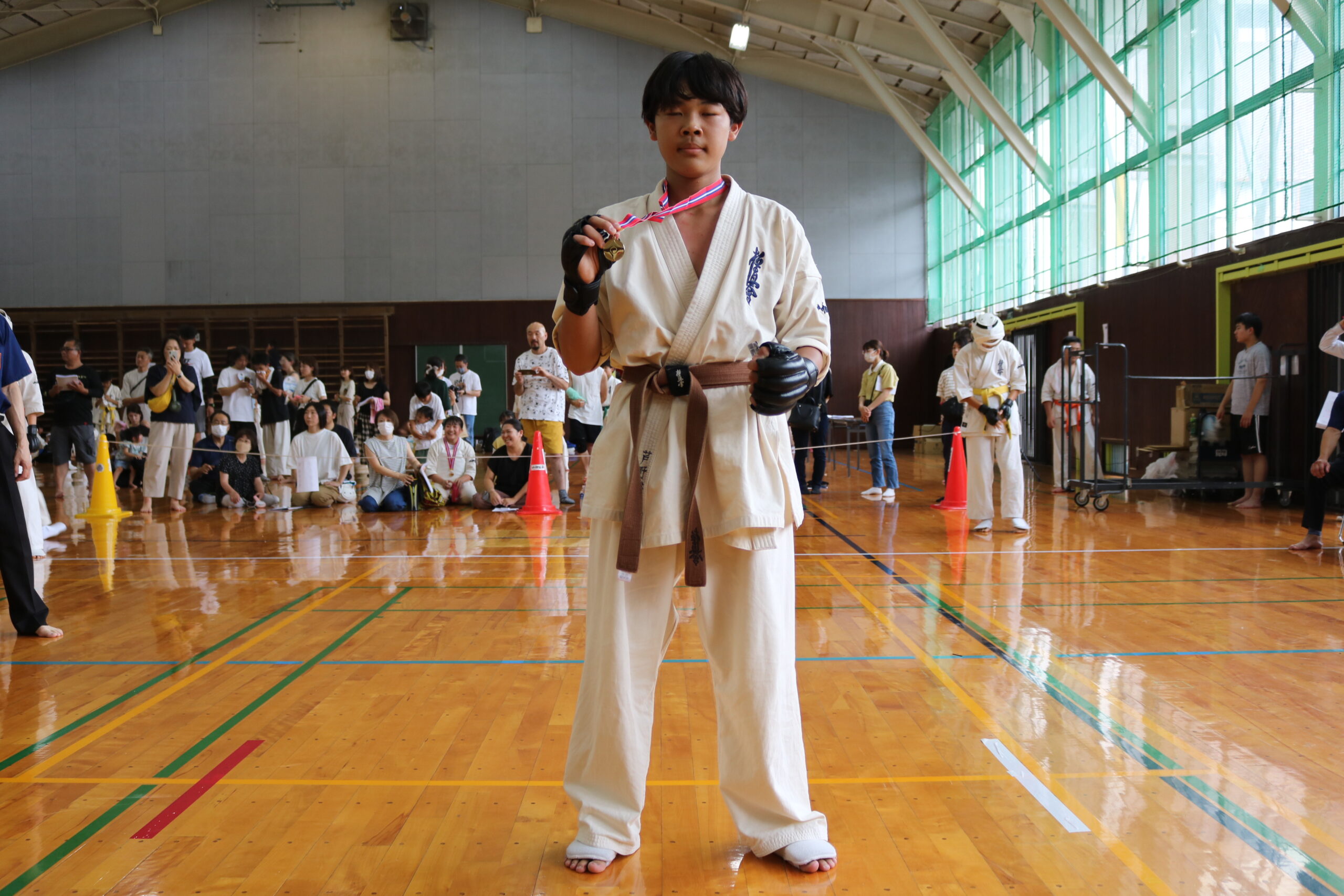 試合は、猛暑の中でも集中力を保ち、自らが磨いた型を存分に発揮していました。特に一般部上級は岸夏輝選手(大江)、鹿野いち花選手(寒河江)の決勝戦となりましたが、互いに日々の稽古で磨いた型を存分に発揮した結果、岸夏輝選手に凱歌が上がりました。
