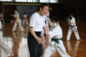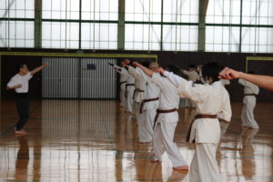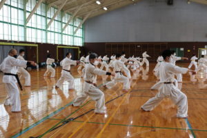 セミナーが始まる前に、田畑師範から理念と理法を共有して、実戦し、体得する事の大切さを本日のテーマにする事と「極真カラテは基本で始まり基本で終わる。そのためには、基本稽古での三合法の実戦し体得していくことが大切です。『ローマは一日にしてならず。』直ぐには出来ませんが、稽古を積み重ねていってください。」と田畑師範からお話しがありました。また、三識について、田畑師範から、ご解説があり、「三識は知識、見識、胆識です。知識、三合法を知っている。見識、三合法は必ず必要なもので身につけなくてはならない、と、信念迄高める。胆識、三合法を実践して、丹田力を強化し、生命力を最高に高め、徳性、個性、技能、知能を最大限迄発揮させることが出来る。実戦して見せる事が胆識です。」と田畑師範がご説明されていました。