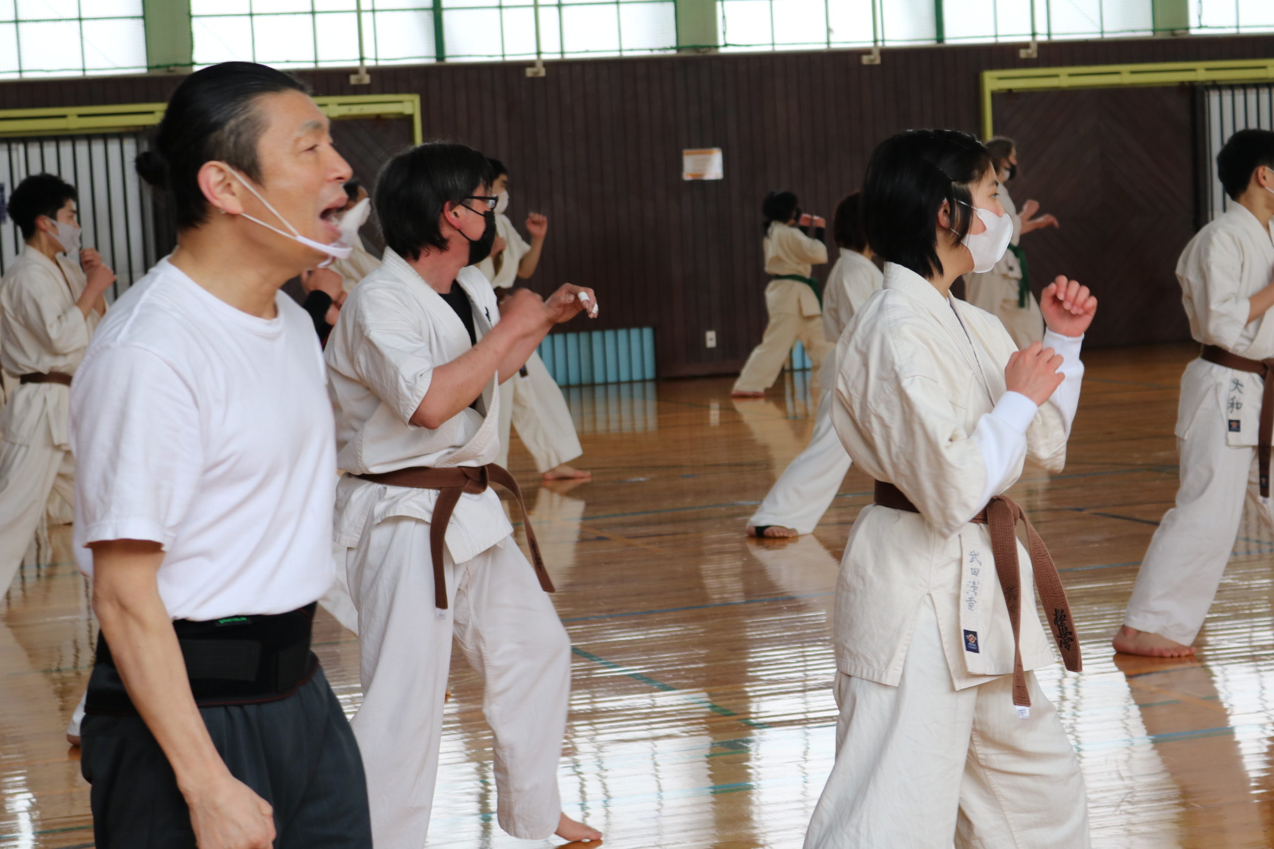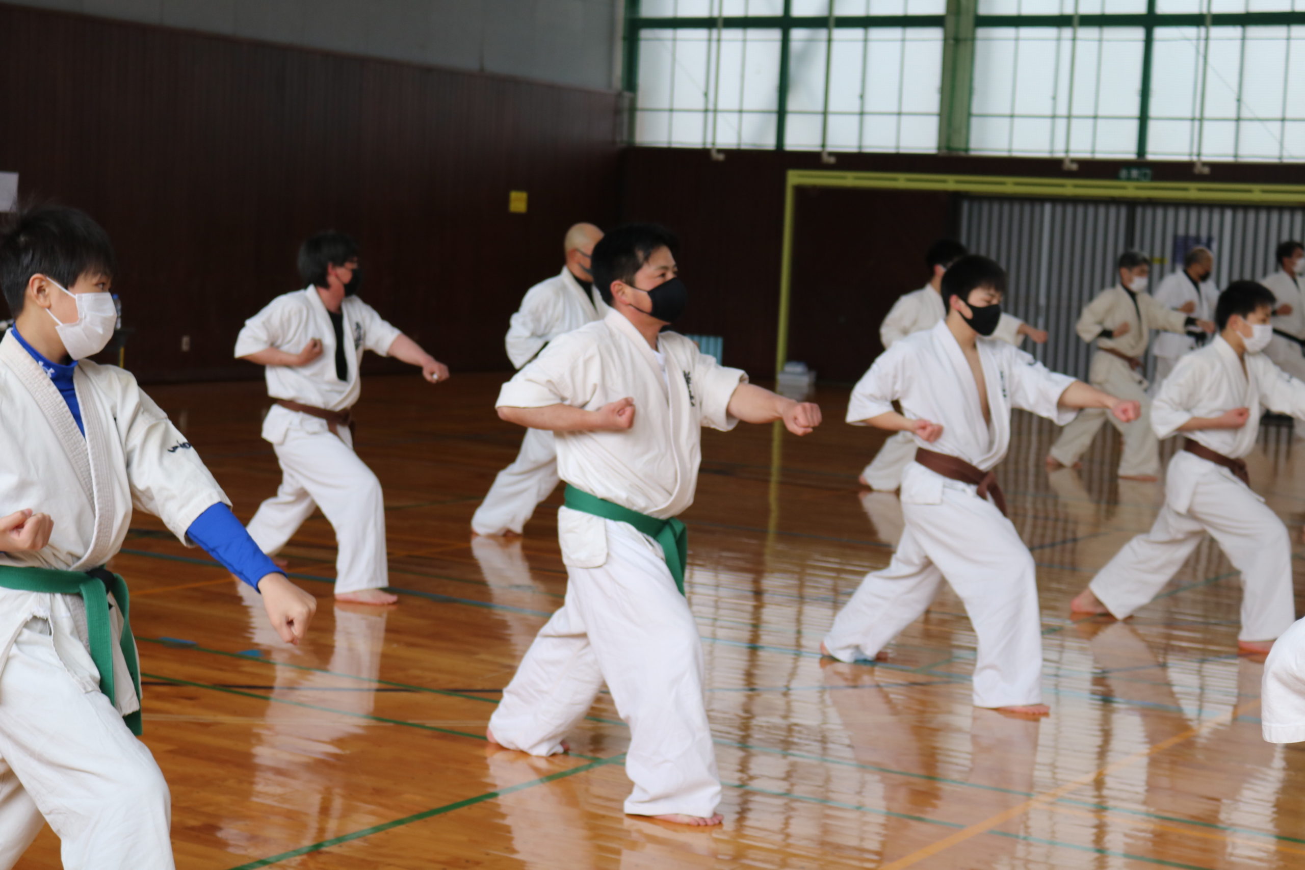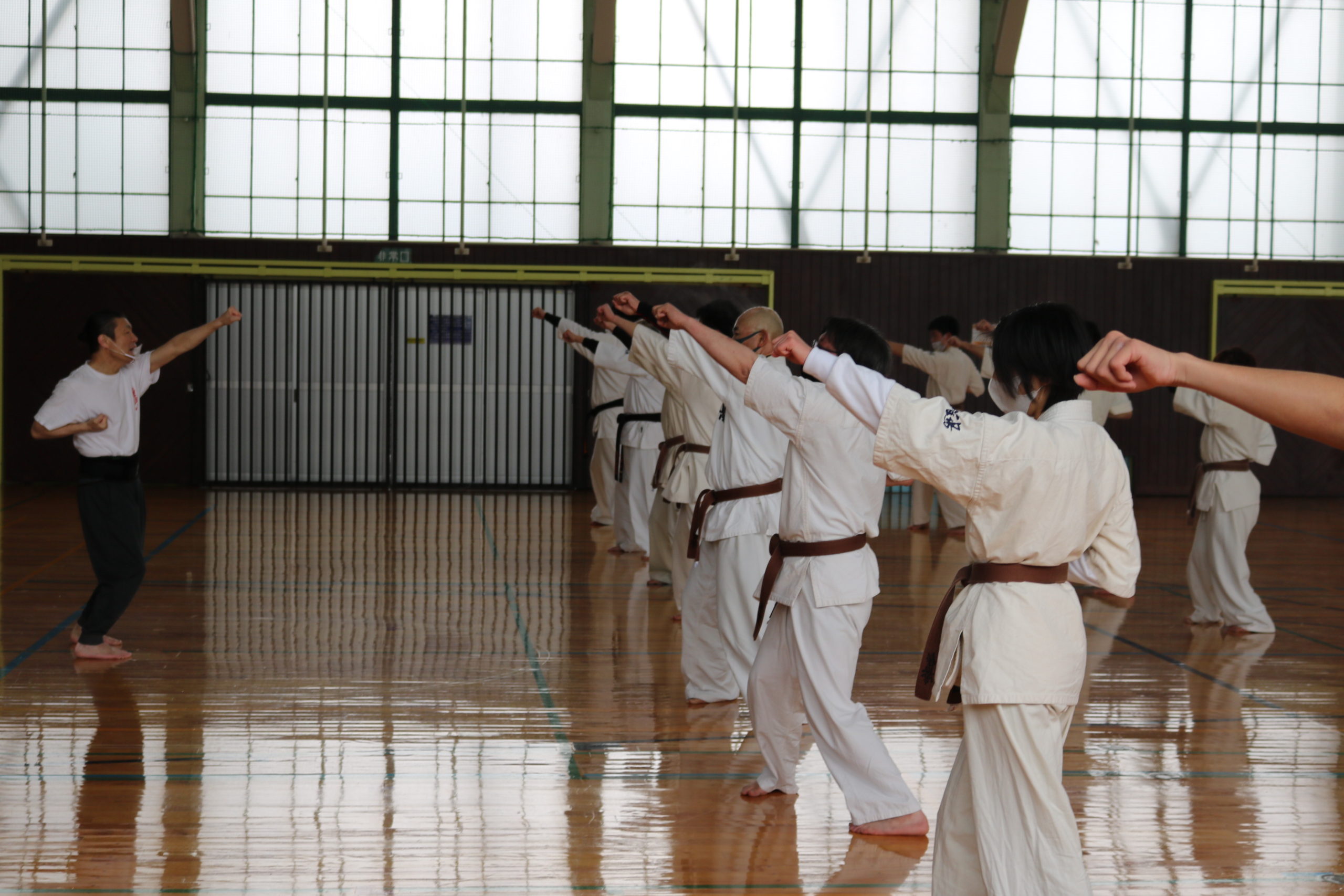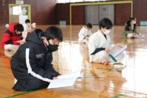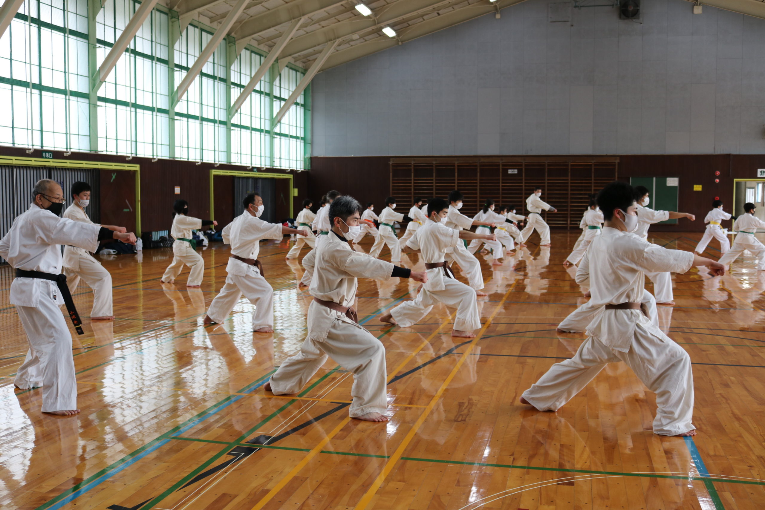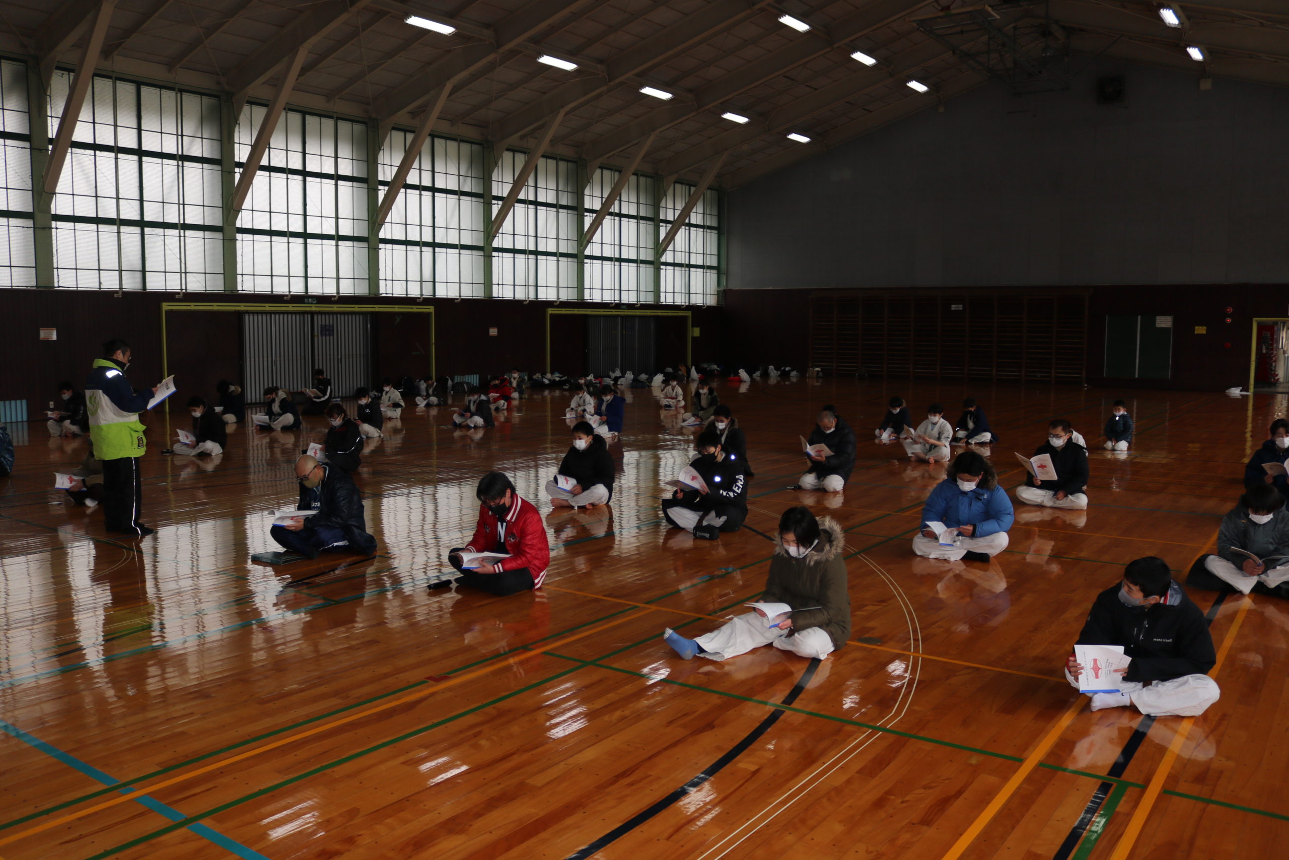 2月21日(日)県体育館小競技場において、合宿代替えセミナーを行い、無事に終了しました。換気が効いていて息が白く床に足が吸い付く感じでした。