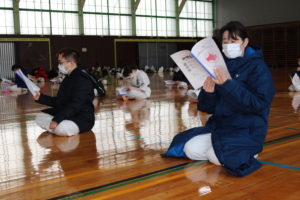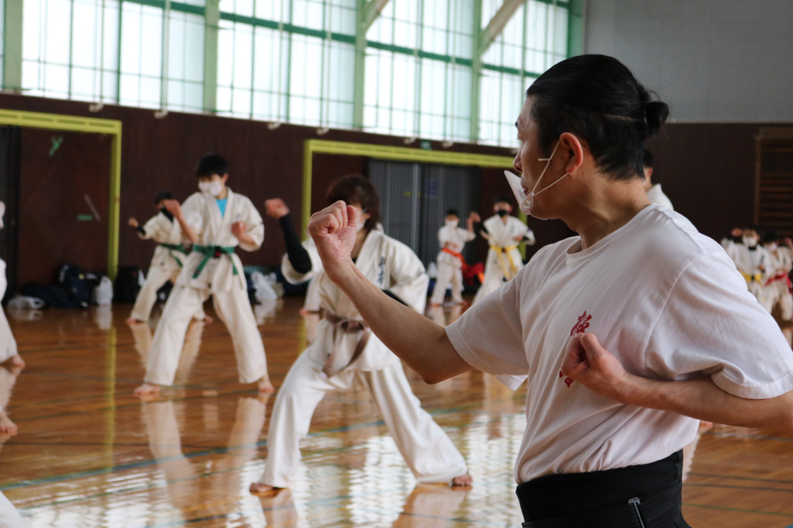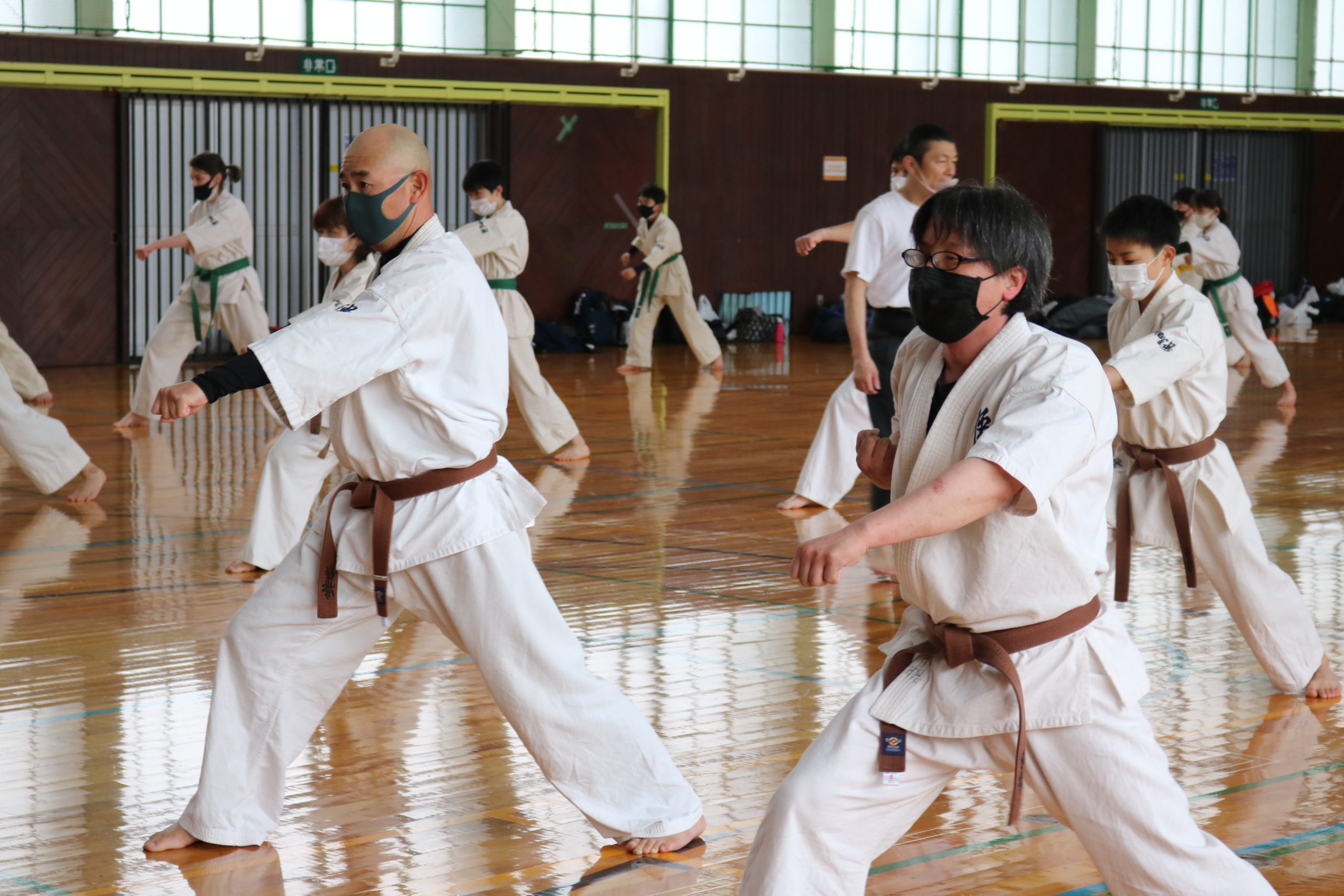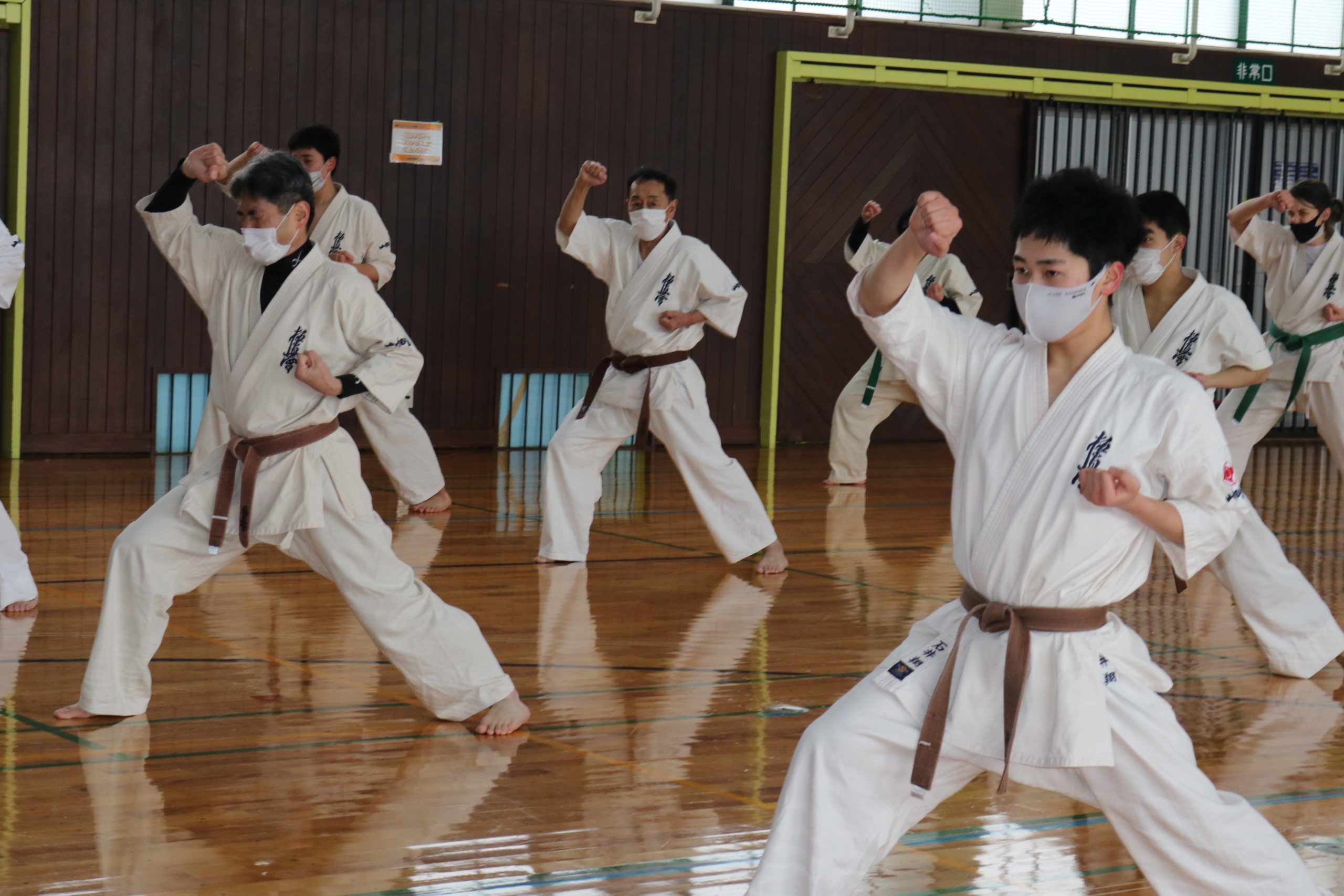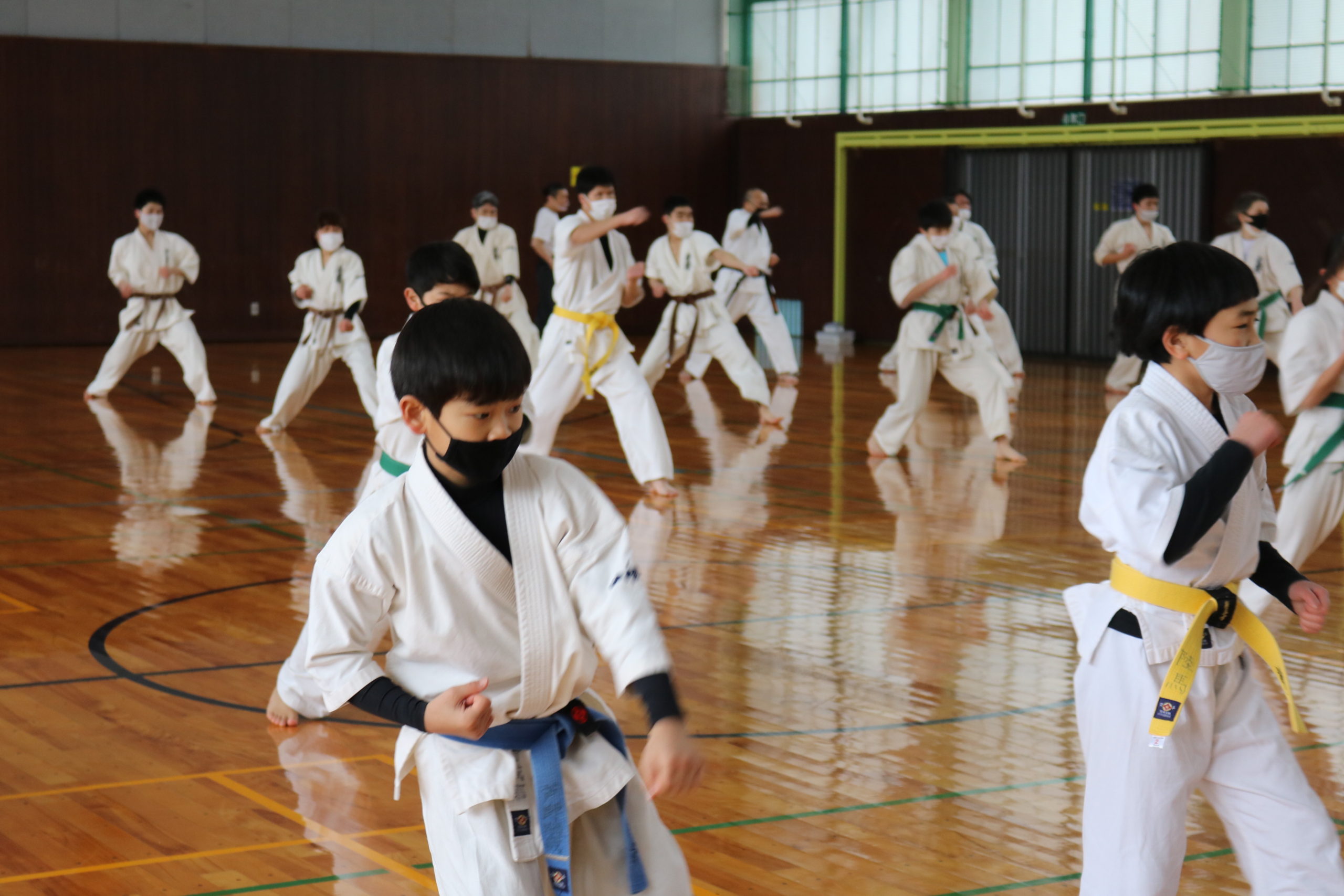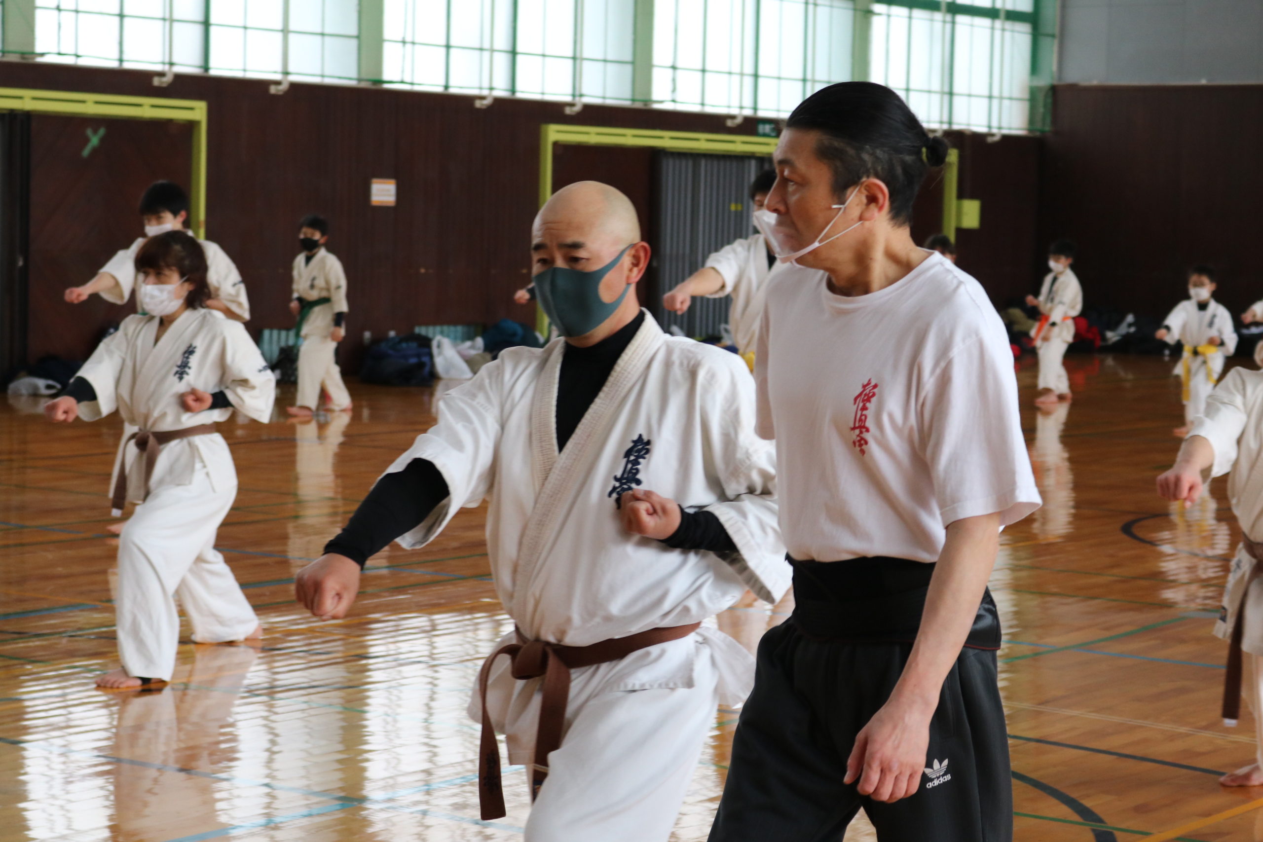 2月21日(日)県体育館小競技場において、合宿代替えセミナーを行い、無事に終了しました。換気が効いていて息が白く床に足が吸い付く感じでした。