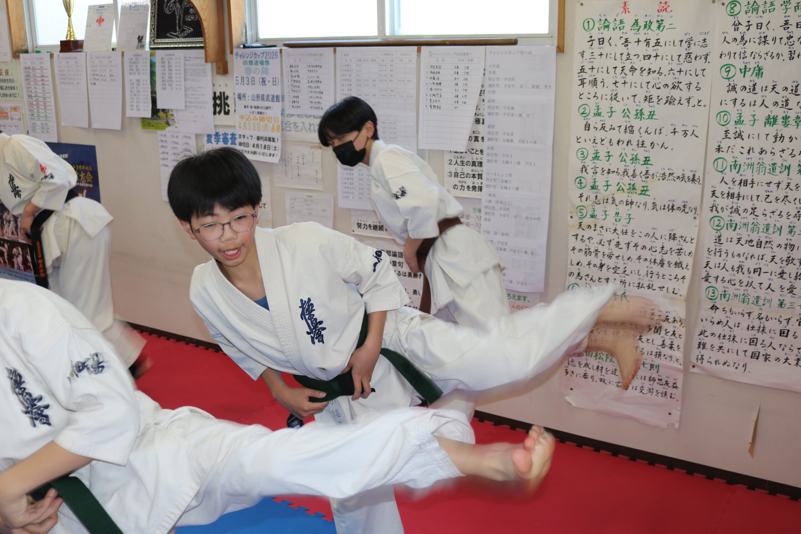 行事レポート 第1回型県選手会稽古フォトライブラリー tabatadojo 2026年4月26日 4月26日(日)本部道場において、第1回型県選手会稽古が行われました。 田畑師範の号令のもと、5月3日のチャレンジカップ、5日の青森型型大会、31日の直心杯型大会を目指す選手を中心に集中力の高い充実した稽古が行われました。