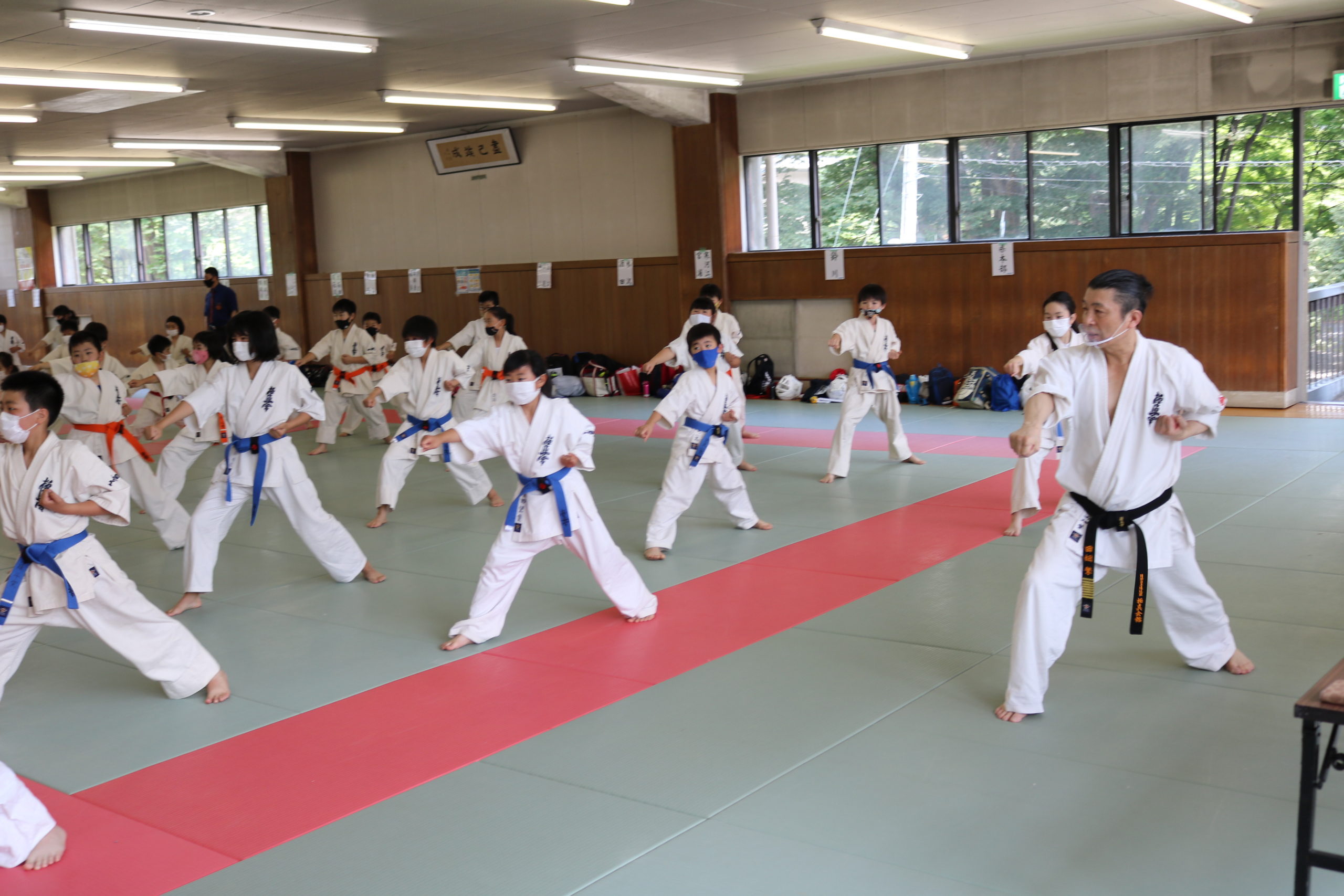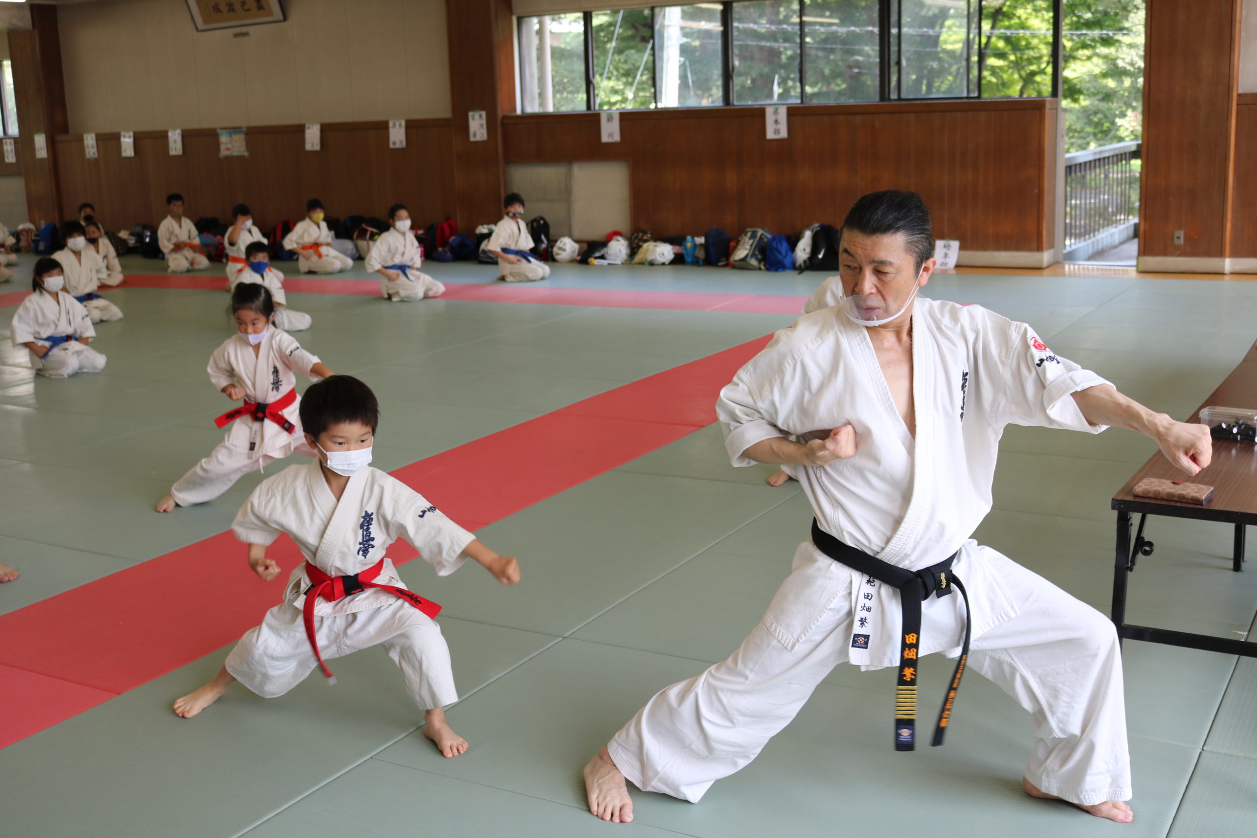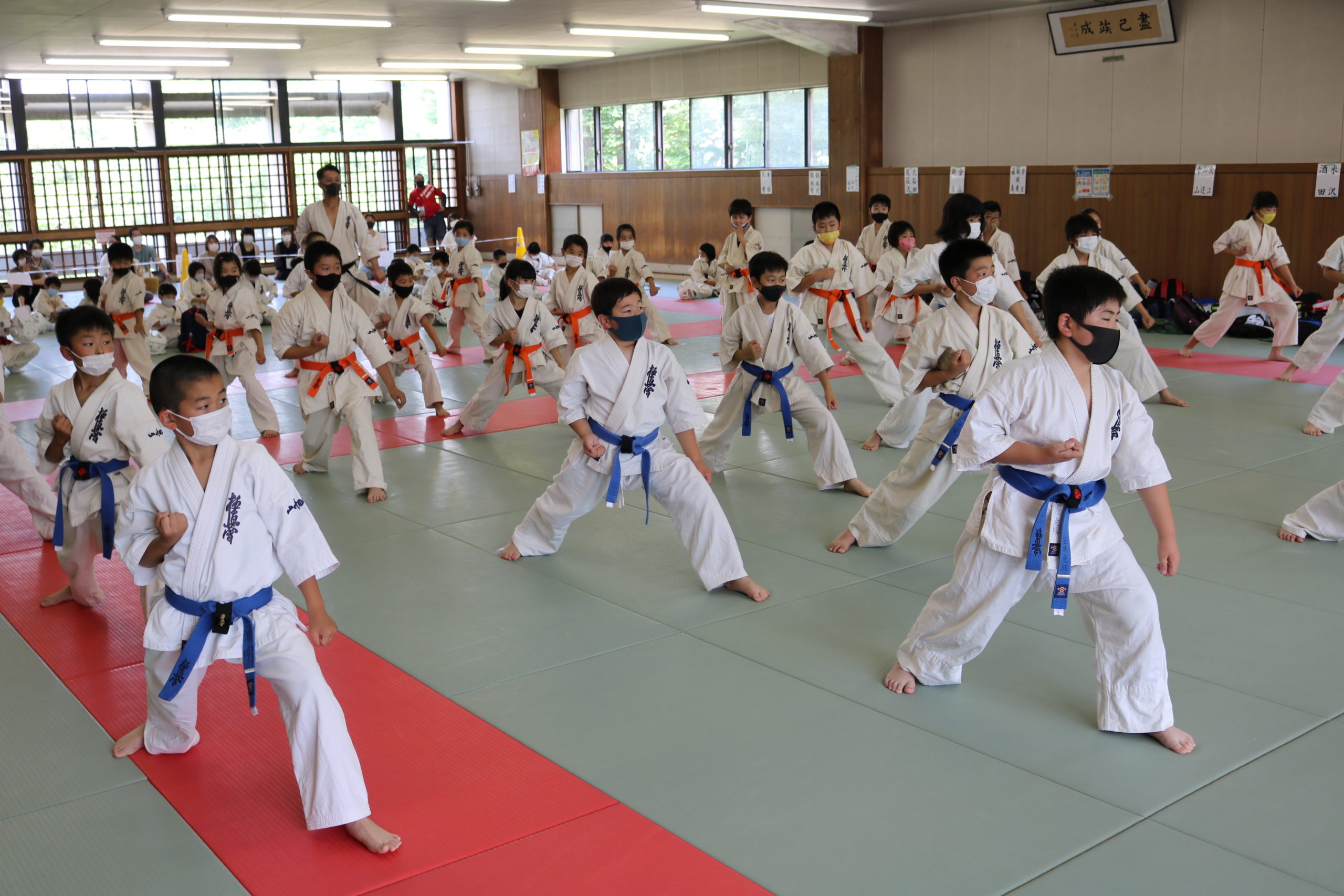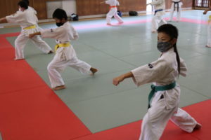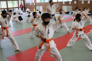 午前は幼年部と少年部(白~青帯)の審査でした。田畑師範の叱咤激励を受けながら、基本・移動・型において我慢強く最後まで、気合いを入れて頑張っていました。
