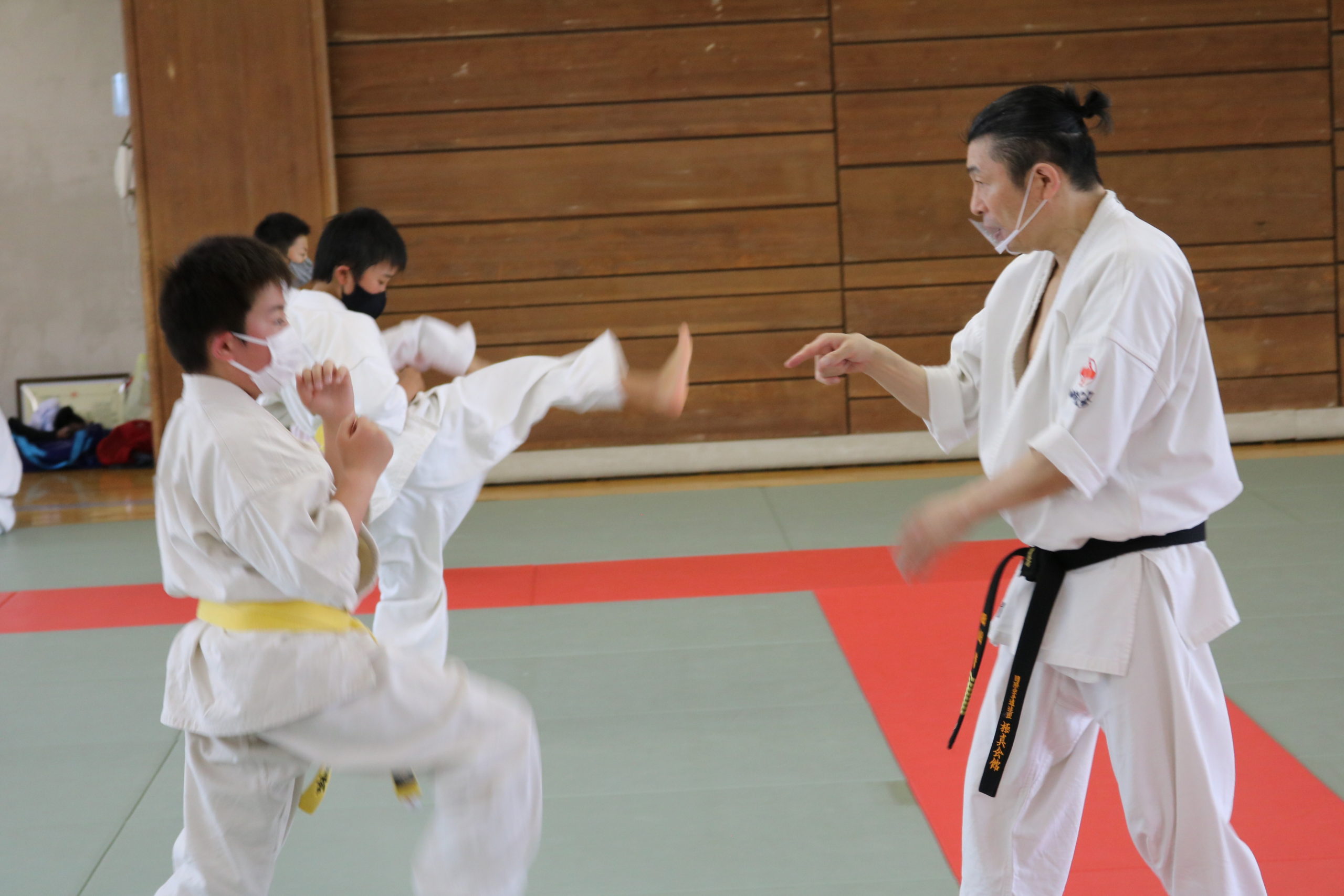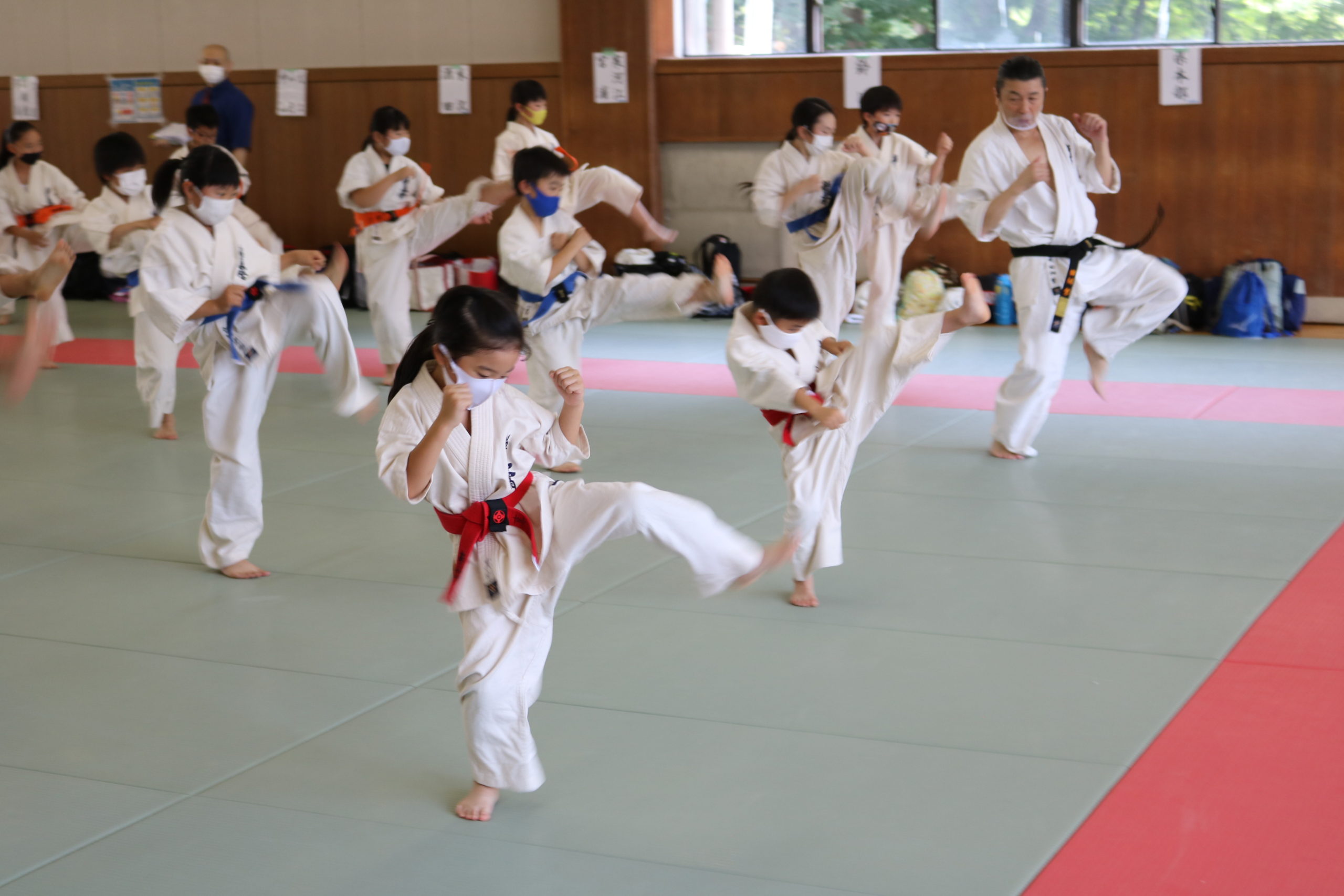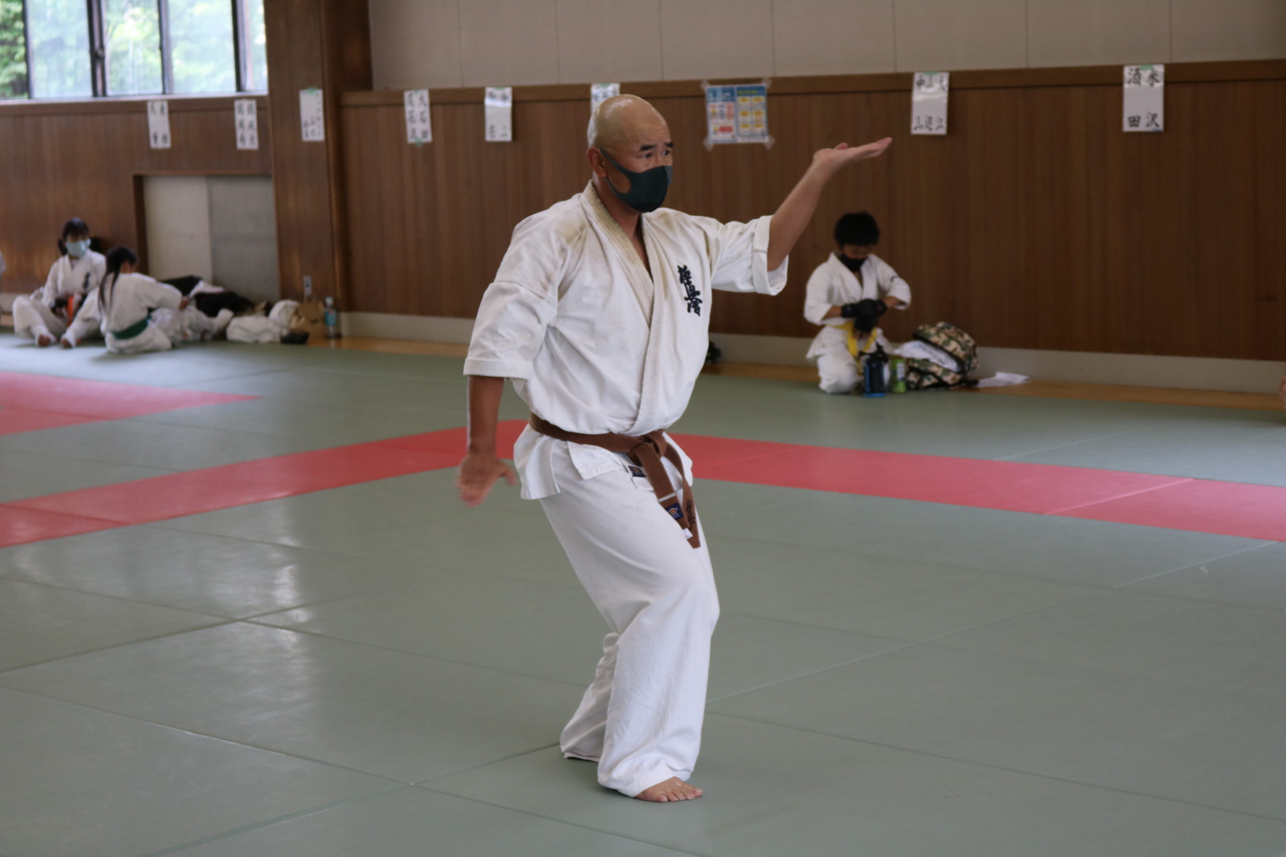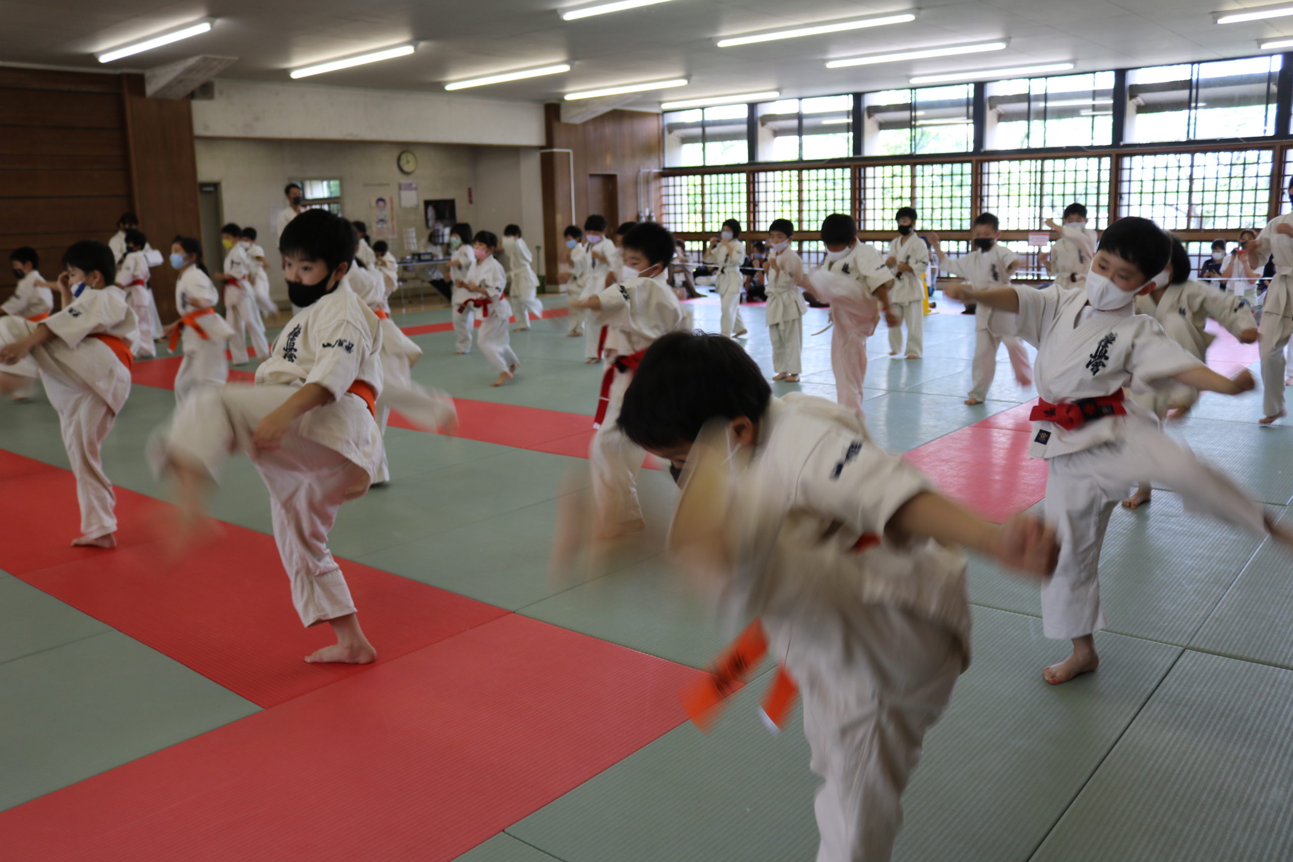 午前は幼年部と少年部(白~青帯)の審査でした。田畑師範の叱咤激励を受けながら、基本・移動・型において我慢強く最後まで、気合いを入れて頑張っていました。