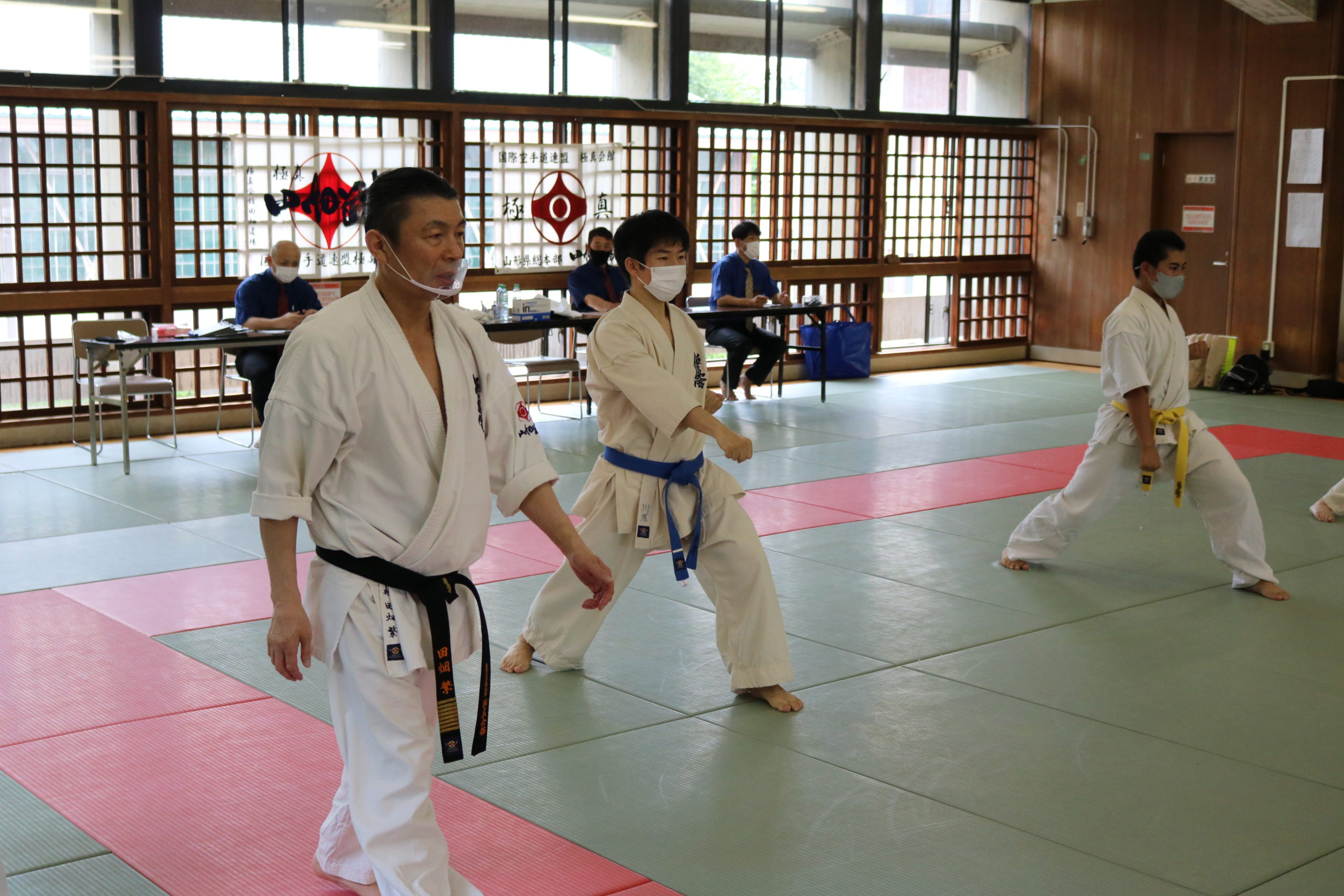 当日は、審査員に長岡淳一師範代、清水明広師範代、上田潤師範代、黒沼誠師範代が立ち会いました。審査会スタッフに本部の前田祥初段、松橋孝明初段、米沢から山本郁子1級がしっかりスクラムを組んで、つつがなく審査会の進行に尽力していただきました。
