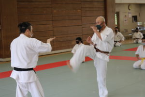 最後に田畑繁主席師範より「私は、極真カラテの継承伝承をしていきます。有段者は、普及発展させていきます。大会、審査会を開催したいと思っていても、師範代・支部長・黒帯・スタッフの協力がなければ、開催することが出来ません。極真カラテの継承伝承も皆さんがいなければ出来ません。この、大山倍逹総裁からの流れを汲む極真カラテに誇りを持って稽古していただきたい。ただ強いだけ、型が上手いだけでなく、加えて人間性の向上も目指して下さい。『正義なき力は暴力なり』礼儀礼節を守り、人間性も高め、まずは初段を取得して、極真の道を歩んで行って下さい。極真カラテで自分の魂を燃やして下さい。」との訓話がありました。