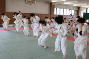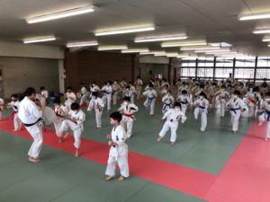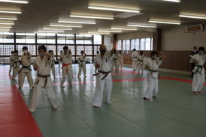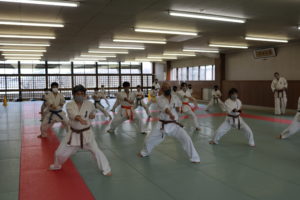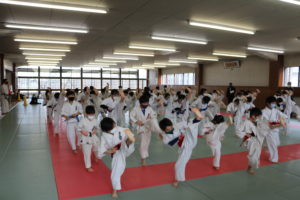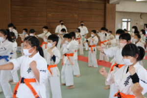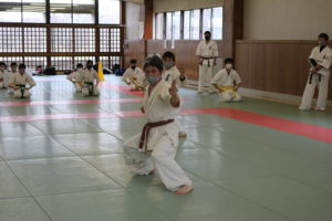 初心者が多く占めましたが、田畑師範の号令のもと、初々しい動きながらも、それぞれが覇気を持ち、明るく、元気に基本・移動・補強・型の審査項目に臨んでいました。