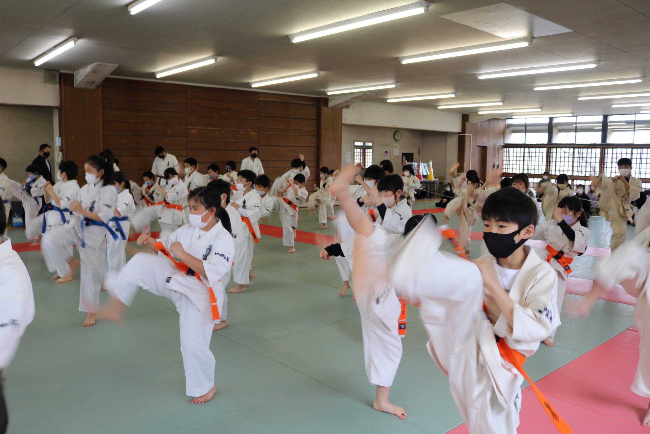 初心者が多く占めましたが、田畑師範の号令のもと、初々しい動きながらも、それぞれが覇気を持ち、明るく、元気に基本・移動・補強・型の審査項目に臨んでいました。