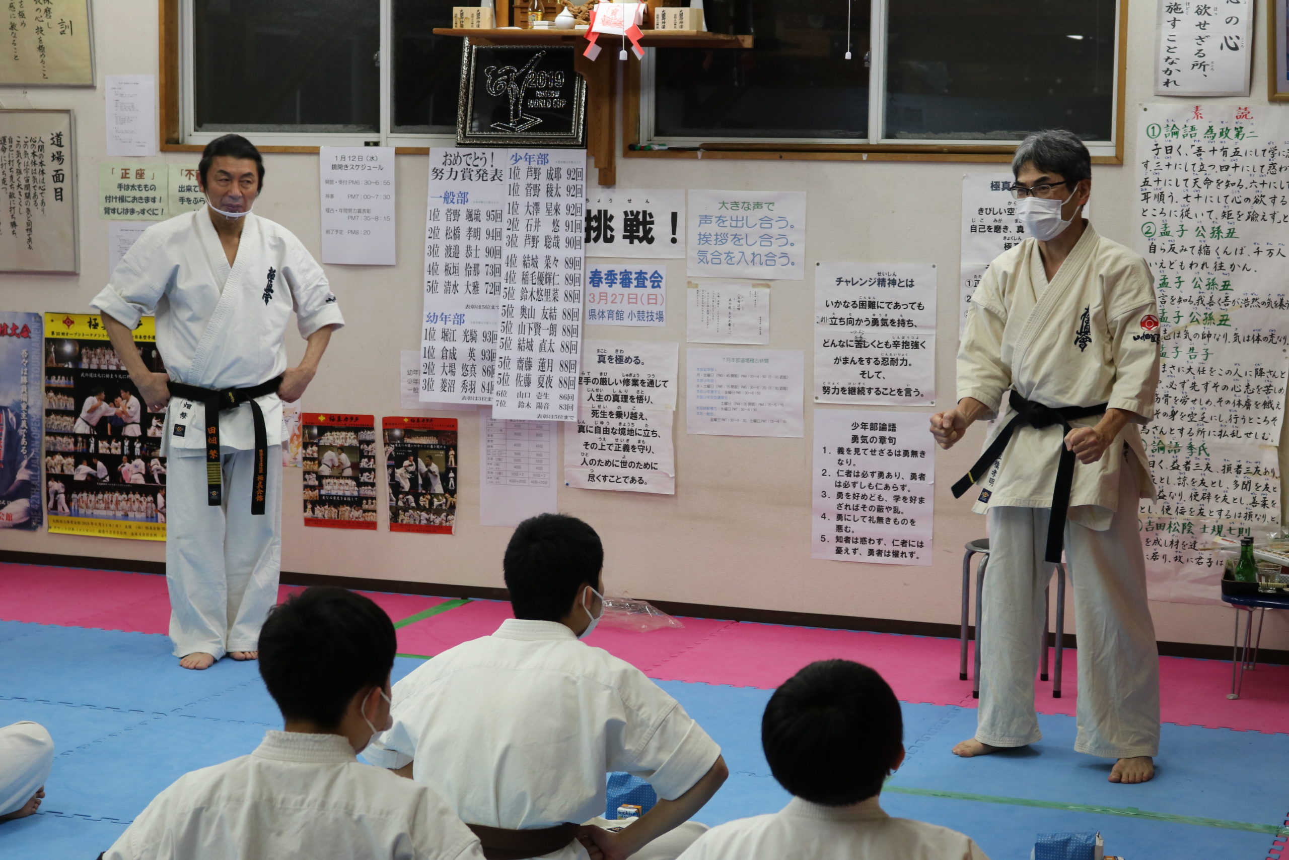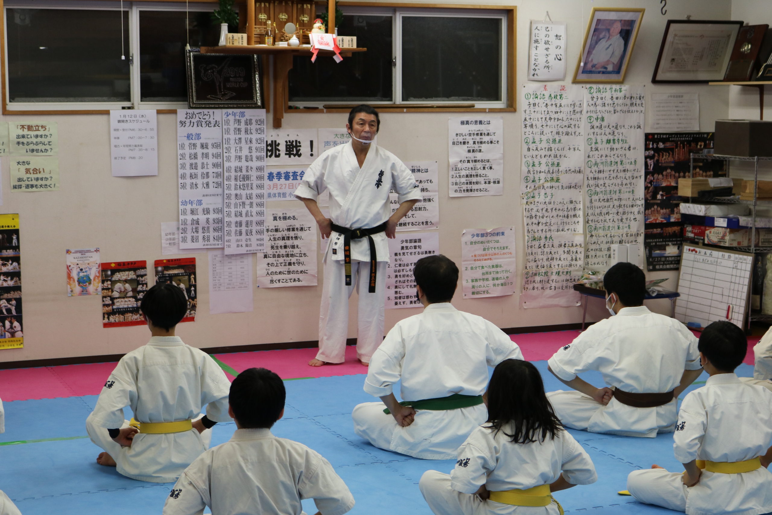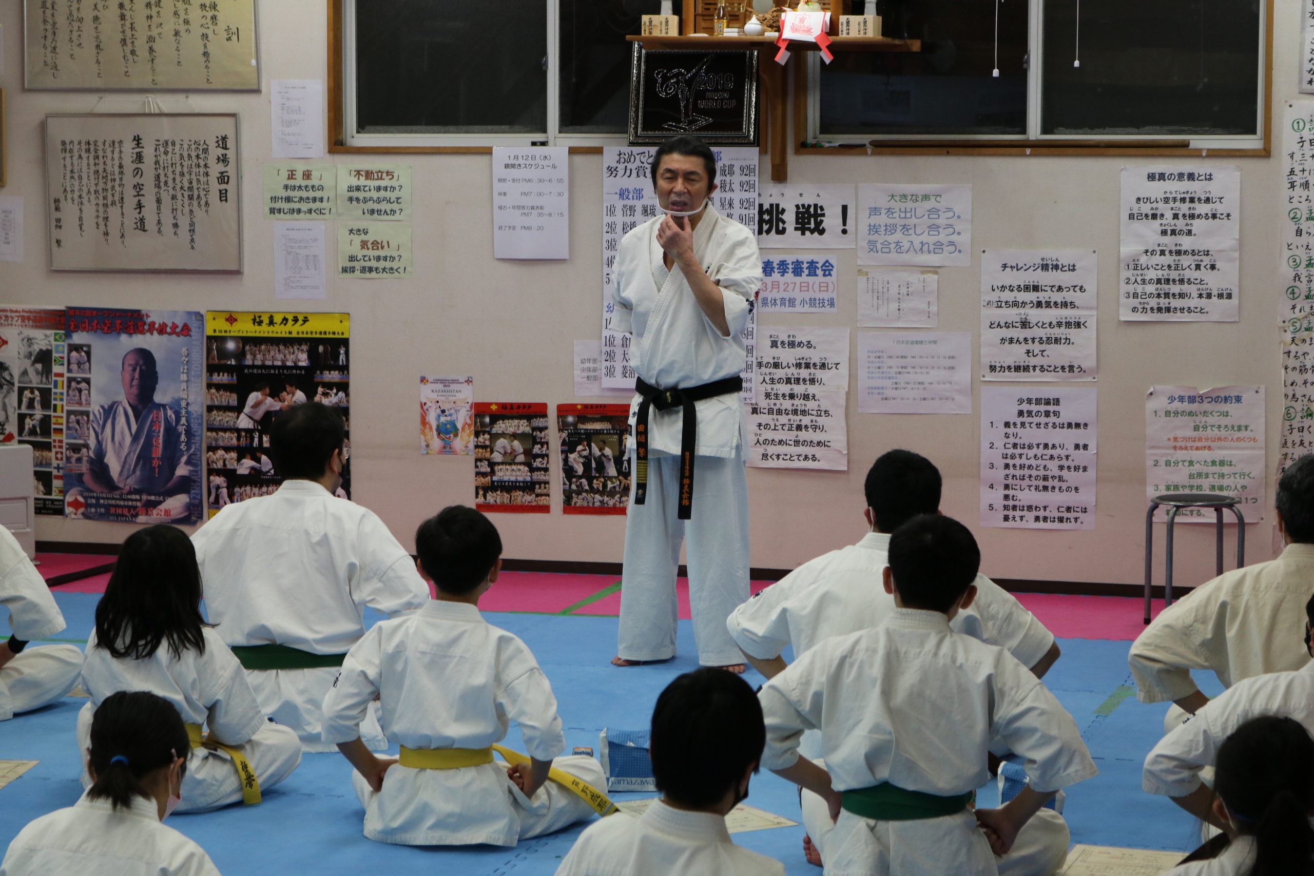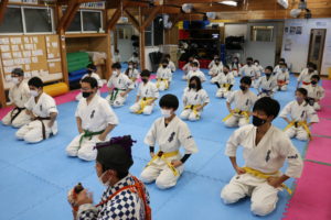 田畑師範からは「一年間、継続した稽古が力になります。自分の力を信じて突き進んでいく。それ以外に強くなる方法はありません。自分の知能、体力、精神の限界を超えていくという強さを持って、「自分に挑戦」を今年のモットーとして、更なる努力積み重ねていってください。」と訓話があり、それぞれが気持ちを引き締めて2022年の新たなスタートを切りました。(事務局 黒沼 誠)