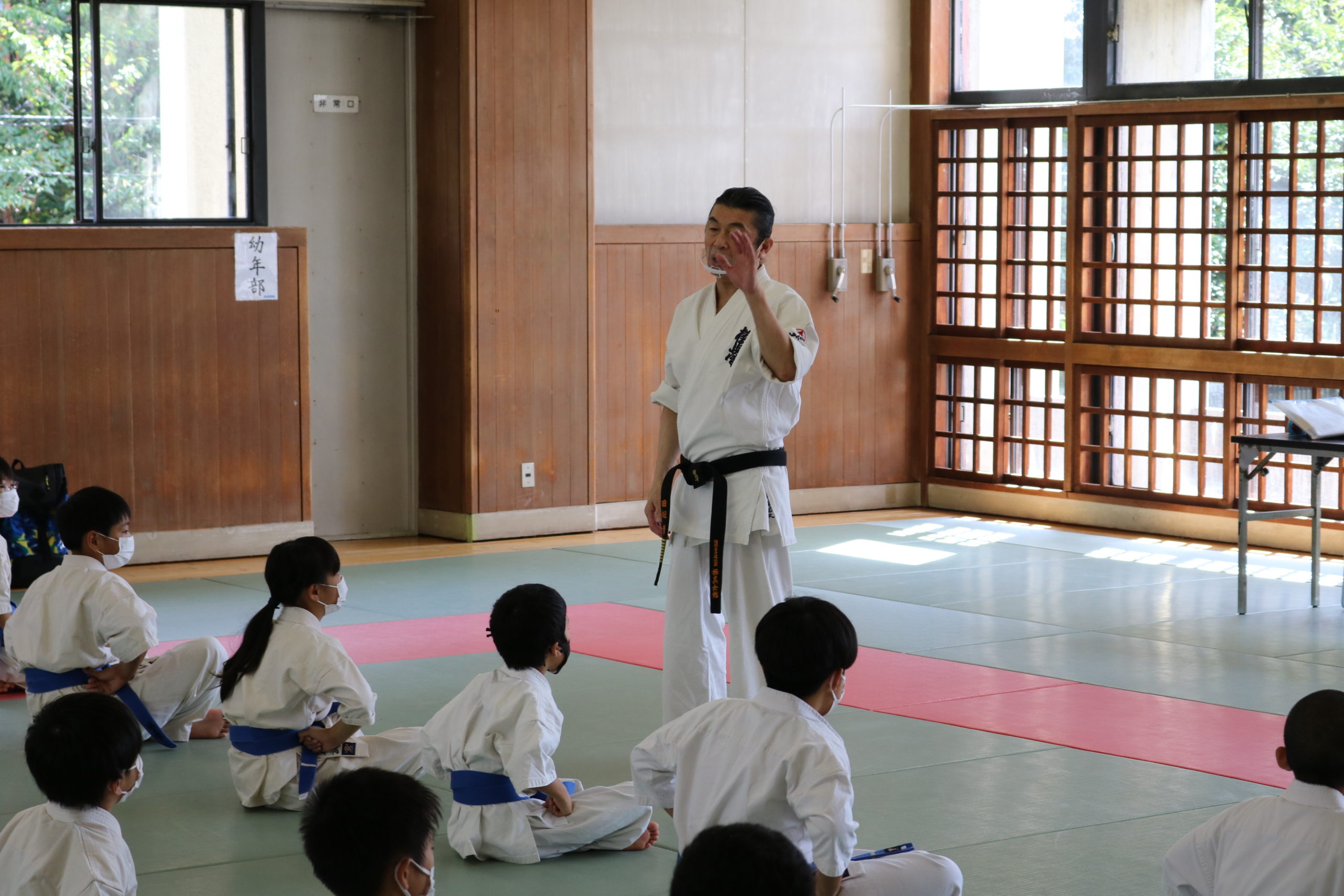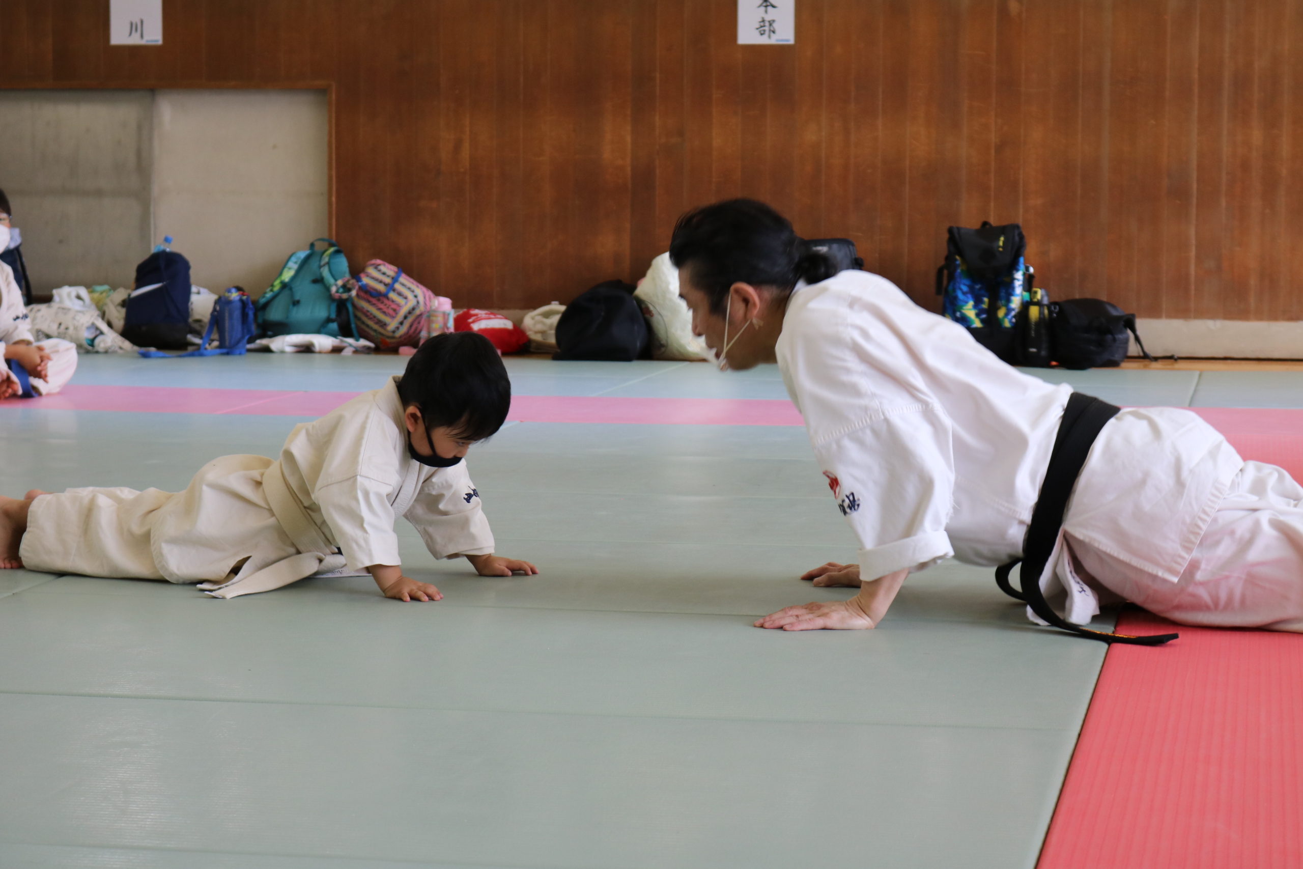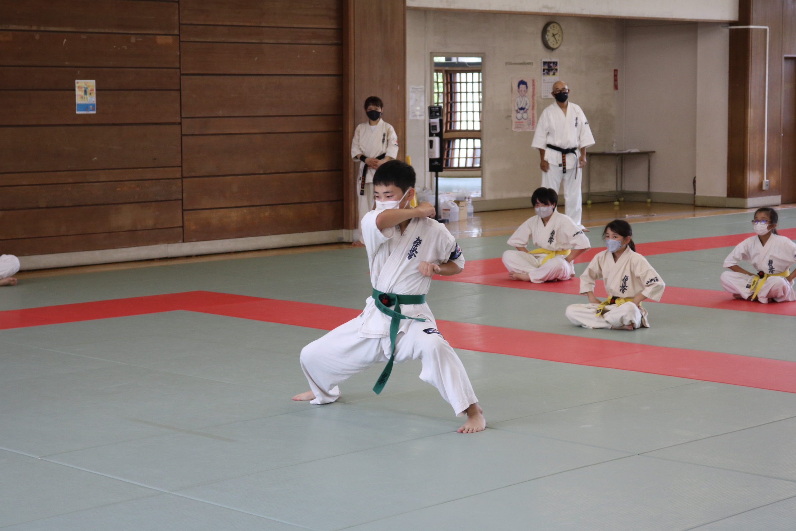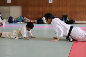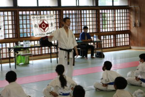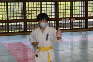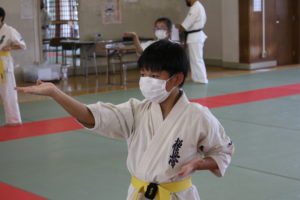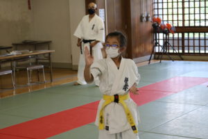 また、今回の幼年部での受審者は、樋口颯真君(大江)のみ1名でしたが、終始、大きな気合と我慢強さは師範をはじめ、場内のみんなから称賛の大きな拍手が送られました。