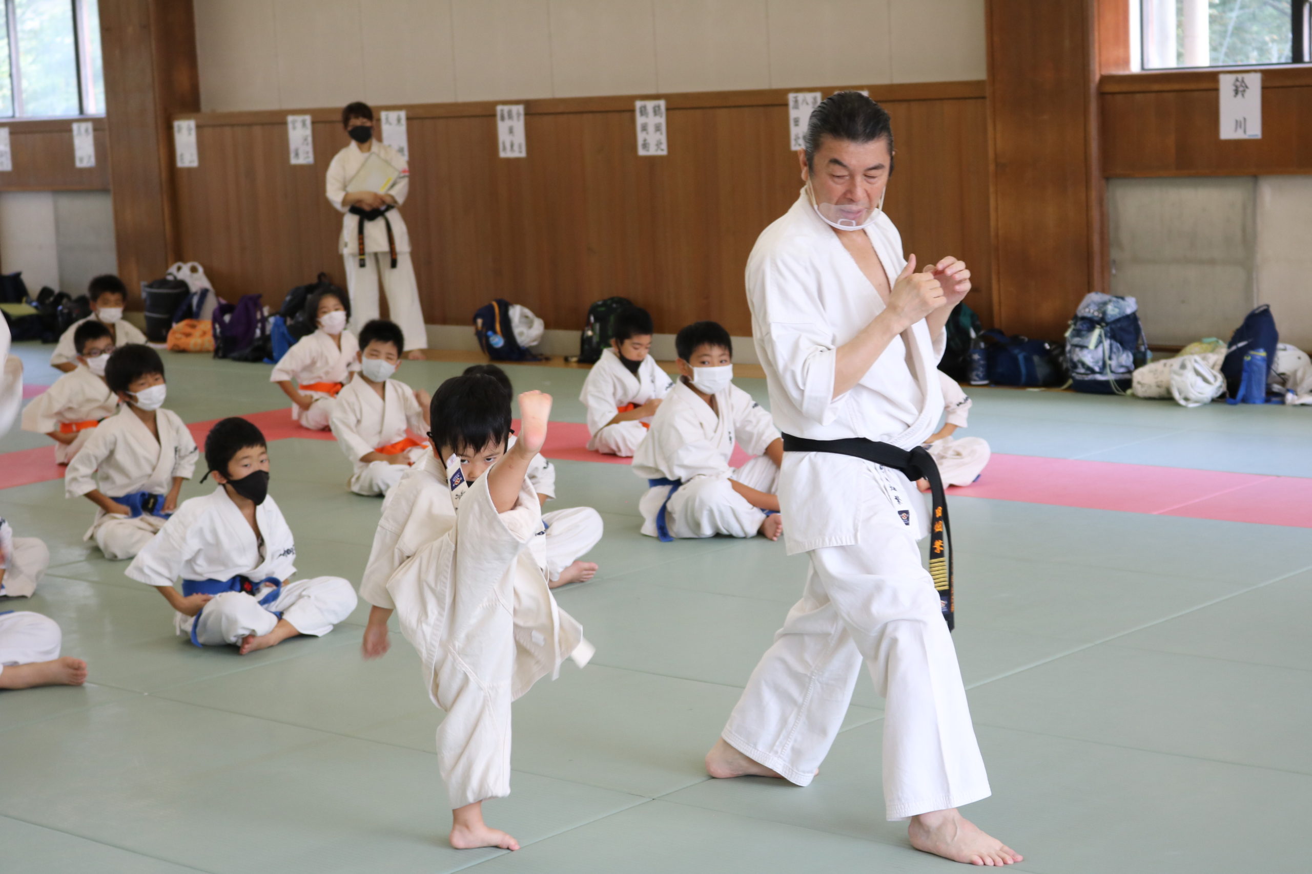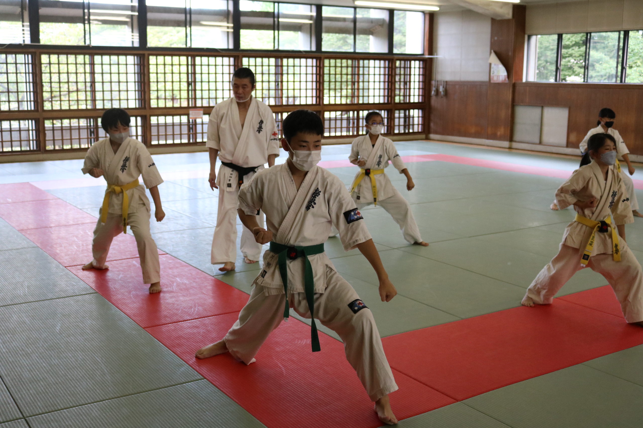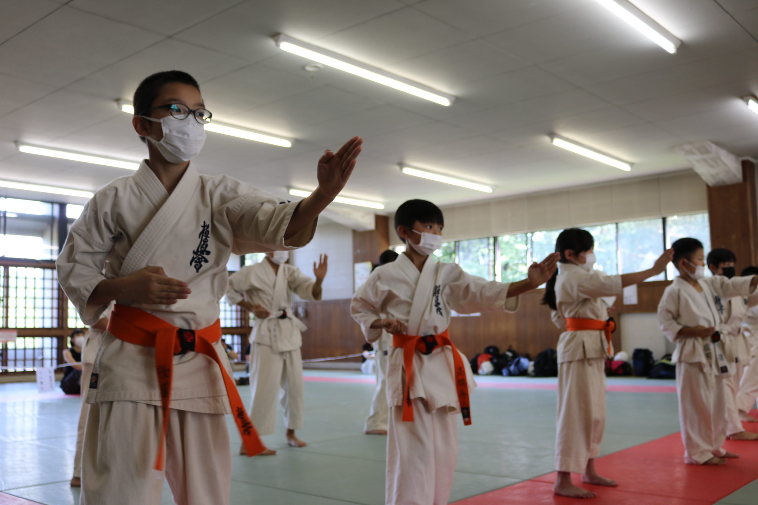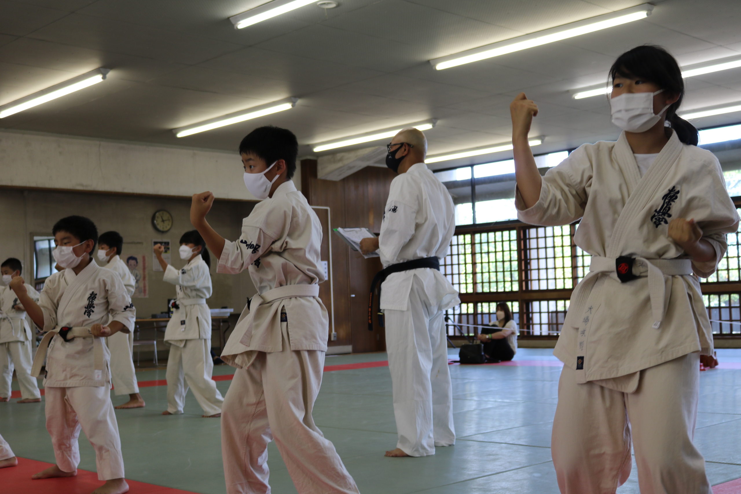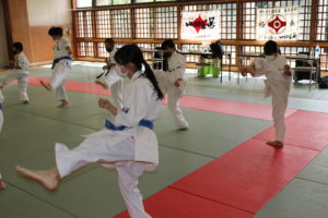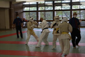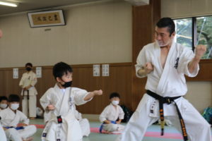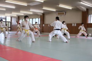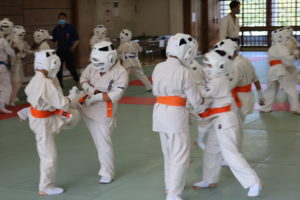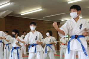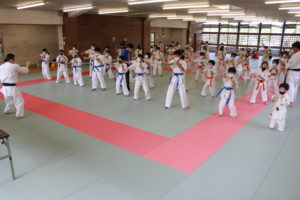 緊張感のある中、少年部、一般部とも基本、移動では最大限の気合、補強では限界を超えて、型では高い集中力を保ち、組手に勇気と覇気をもって臨んでいました。