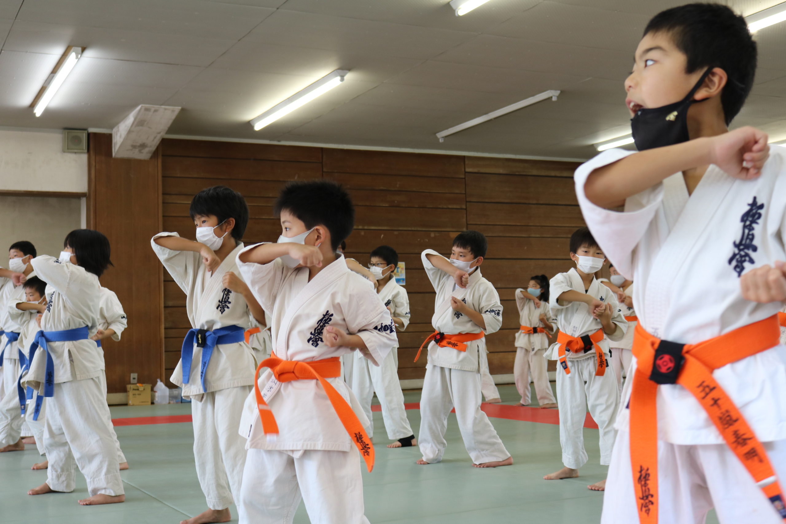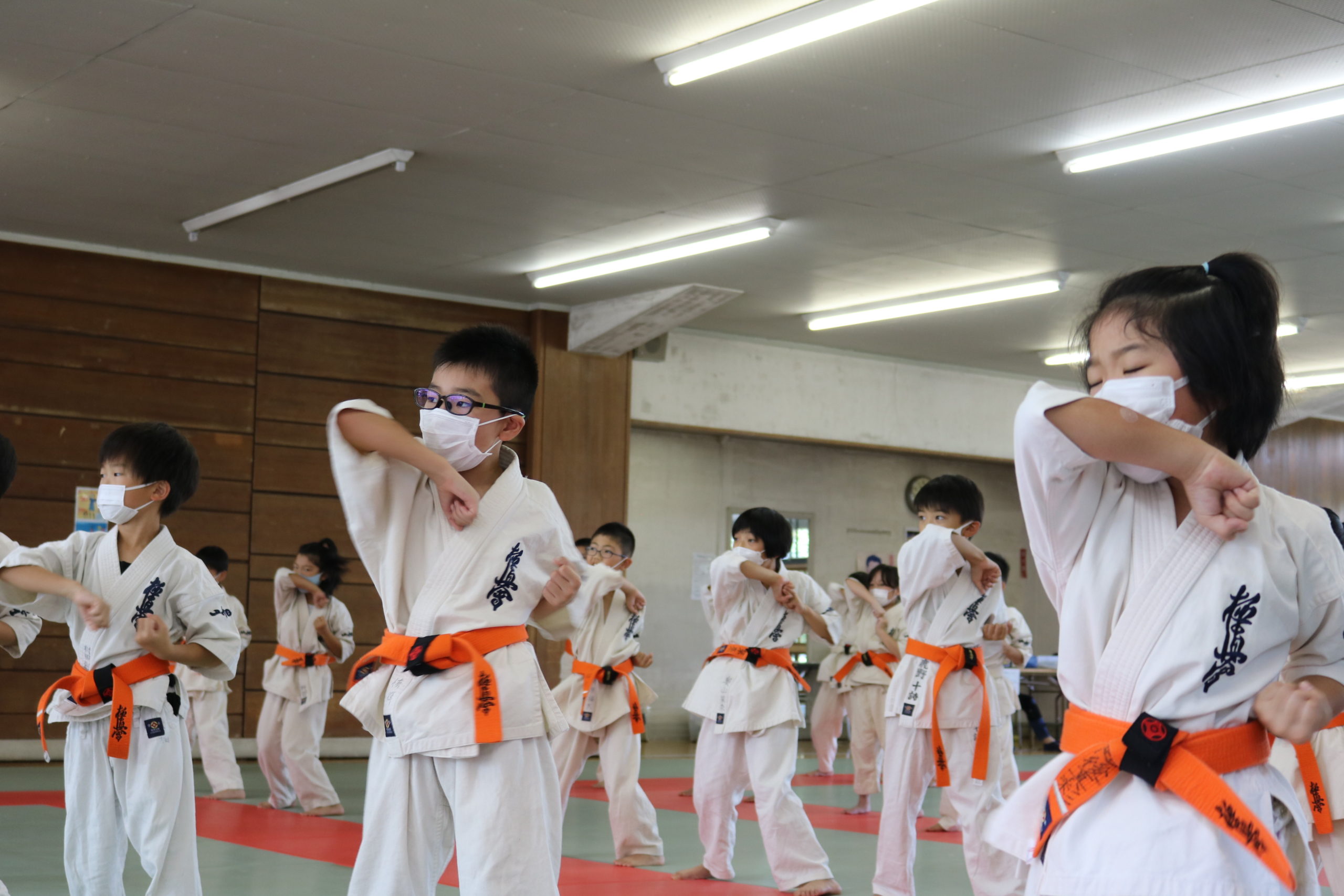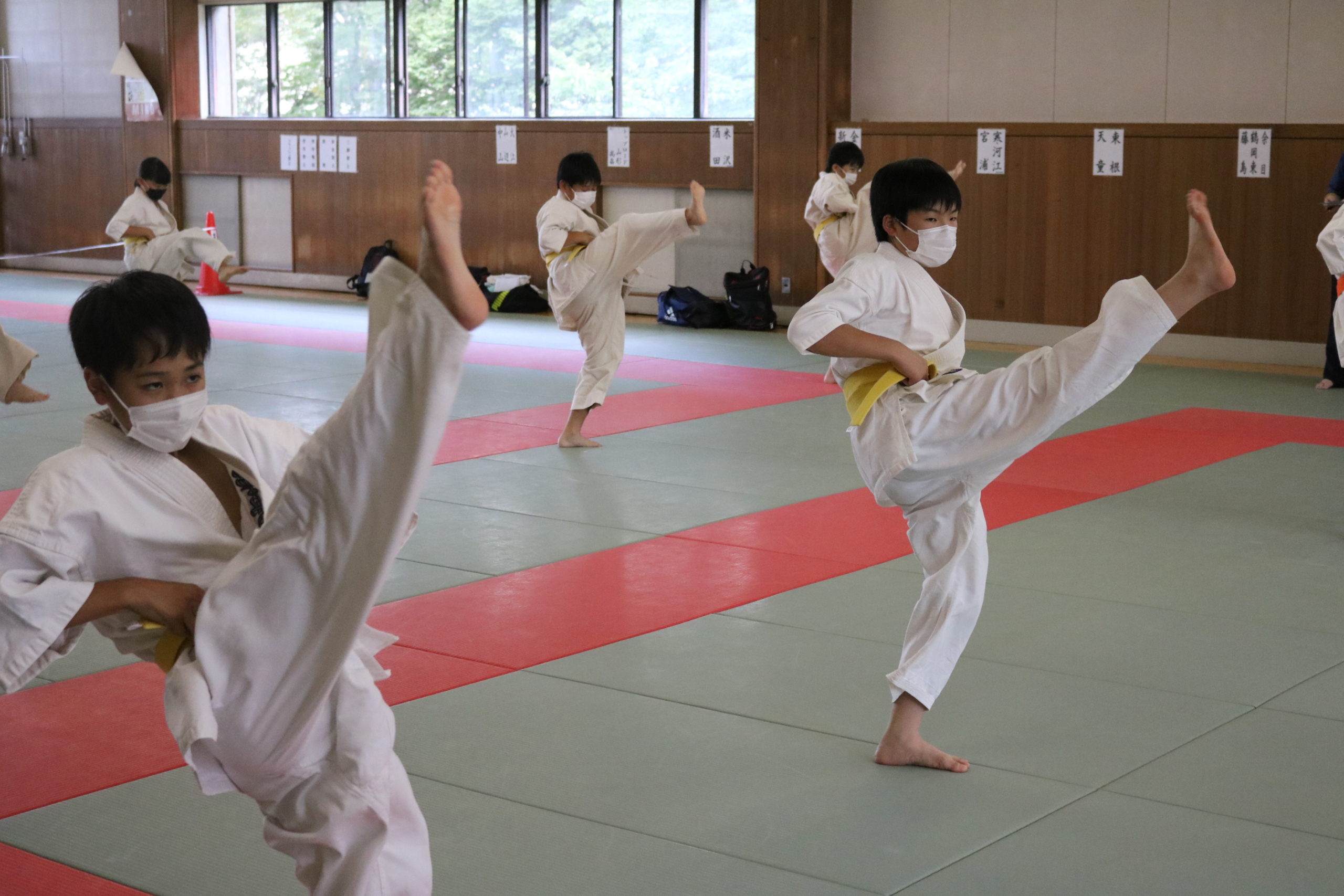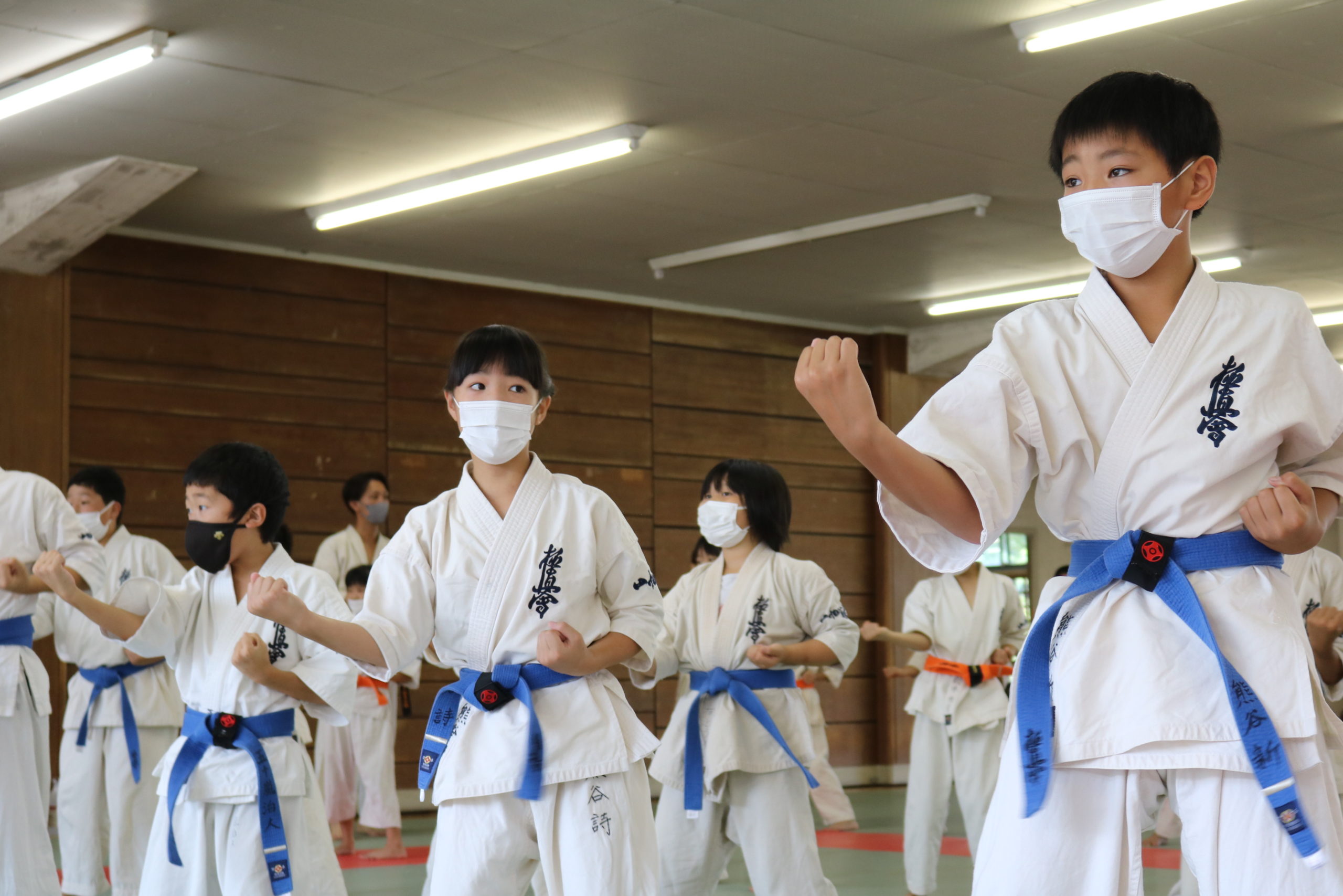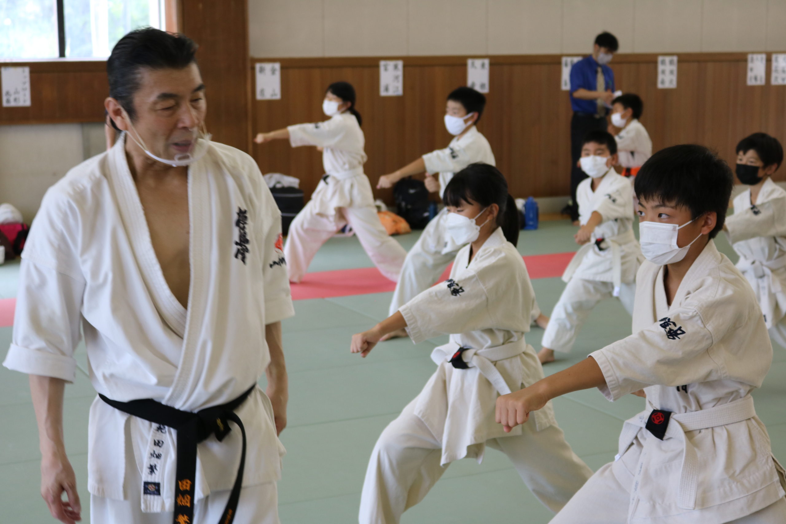 緊張感のある中、少年部、一般部とも基本、移動では最大限の気合、補強では限界を超えて、型では高い集中力を保ち、組手に勇気と覇気をもって臨んでいました。