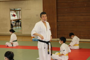 最後に田畑師範から「黄帯まで来ることも大変です。みんなはこれからますます強くなるから、心を高めて、同時にカラテの技術も高めていくようにして頑張ってください。」と少年部への訓話の後、「大山総裁が『牛を川まで引っ張っていくのは私の役目、その水を飲むか飲まないかは牛自身の問題。』とおっしゃっていたように、極意をつかむか、つかまないかは皆さん次第です。極真カラテは生涯をかけて自分を磨き上げ、息長く地道に稽古して、精神力を養い、自分に厳しく、自分の限界を超えて強さと人格力を求めていくことが武道極真カラテです。」との訓話がありました。