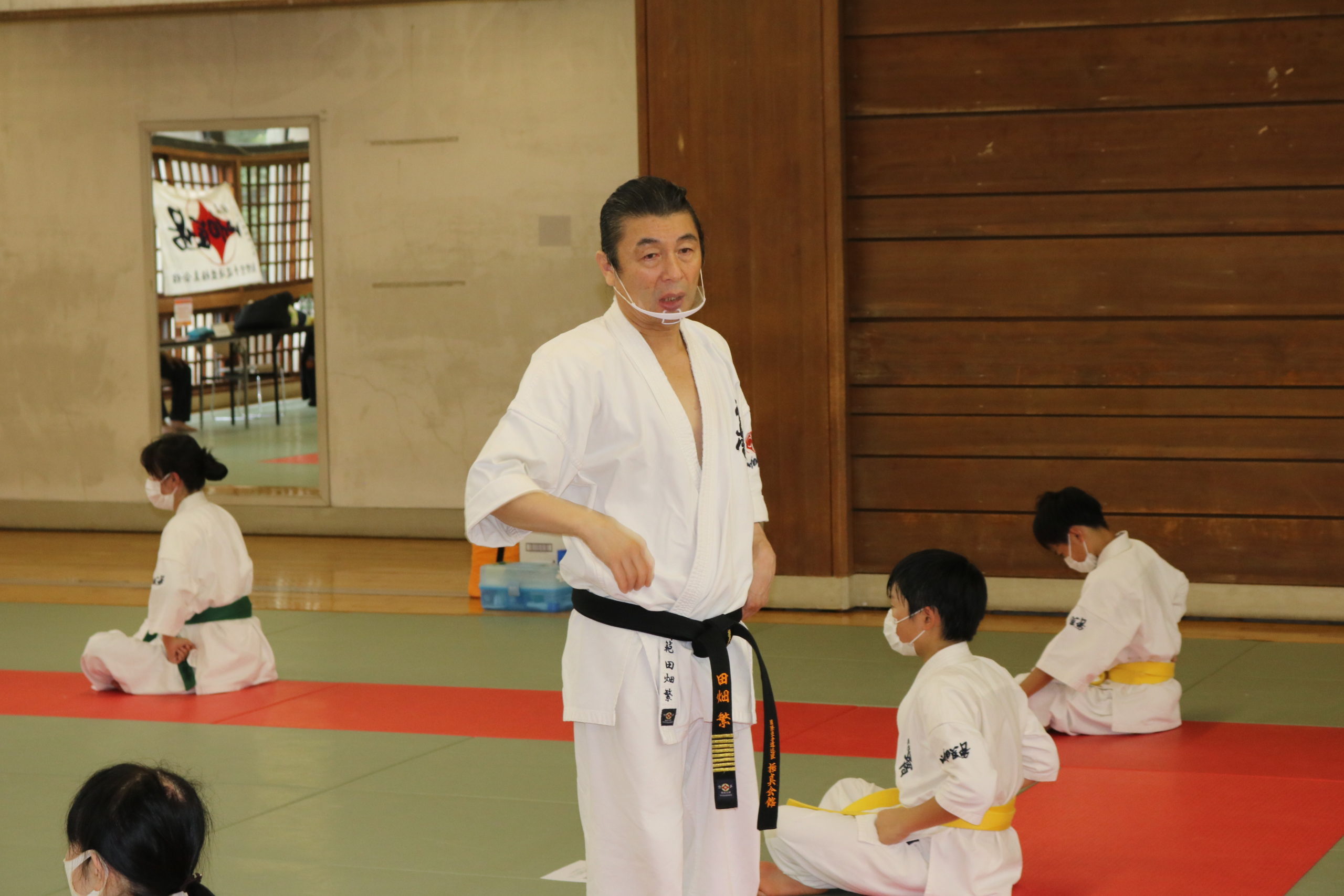 午前の幼年部・少年部(白~青帯)の審査会は実技開始前に田畑師範より、「感謝の気持ちをもって、普段よりも集中して、持っている技術・心・精神を出し、一本一本の気合、技に心を込めて審査会に臨んでください。」との激励がありました。