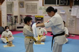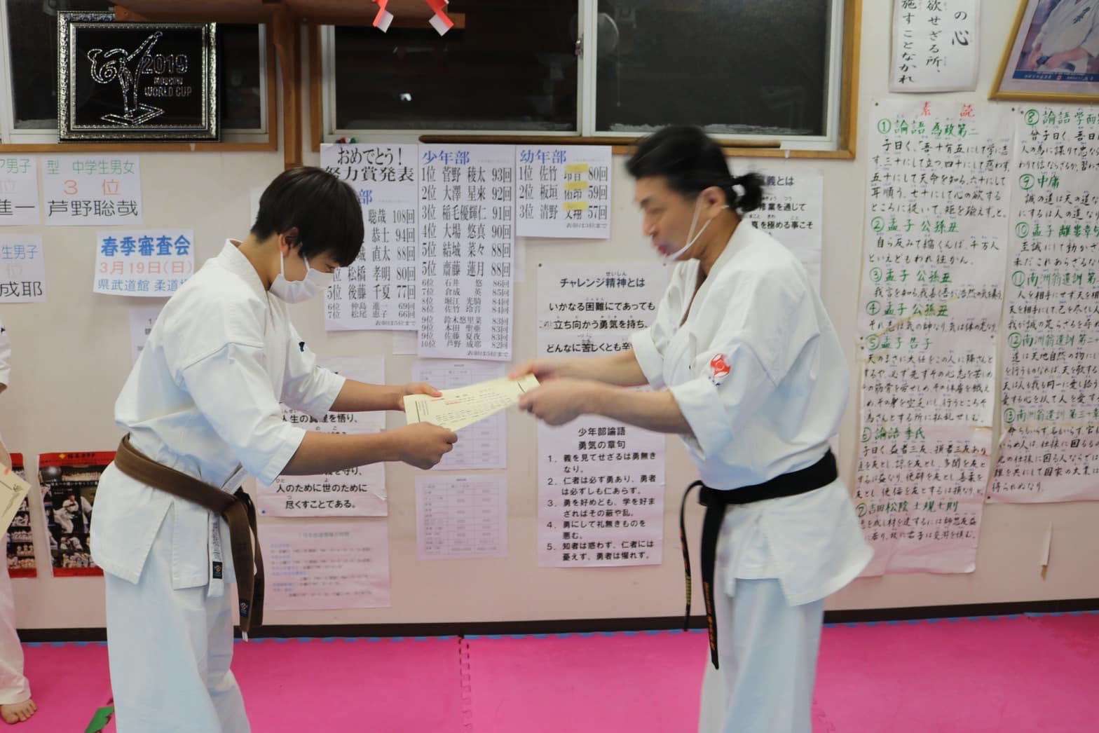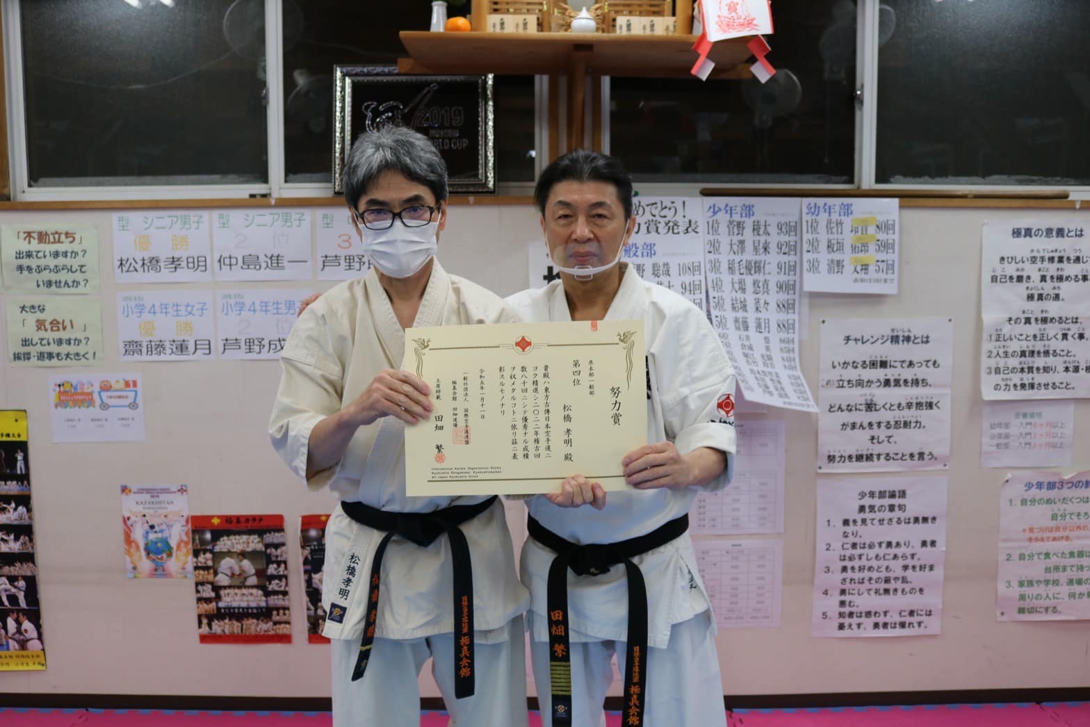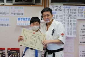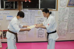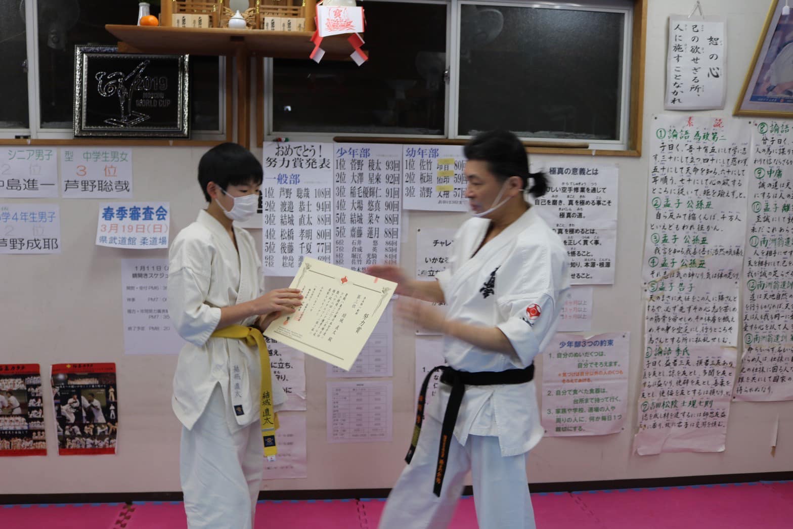 田畑師範より、年間努力賞おめでとうございます。継続はちから、一本一本の技の積み重ね、一回一回の稽古の積み重ねが、今の自分を作っています。三合法のチカラを信じて、今年も更なる努力に邁進して参りましょう。とおっしゃってました。